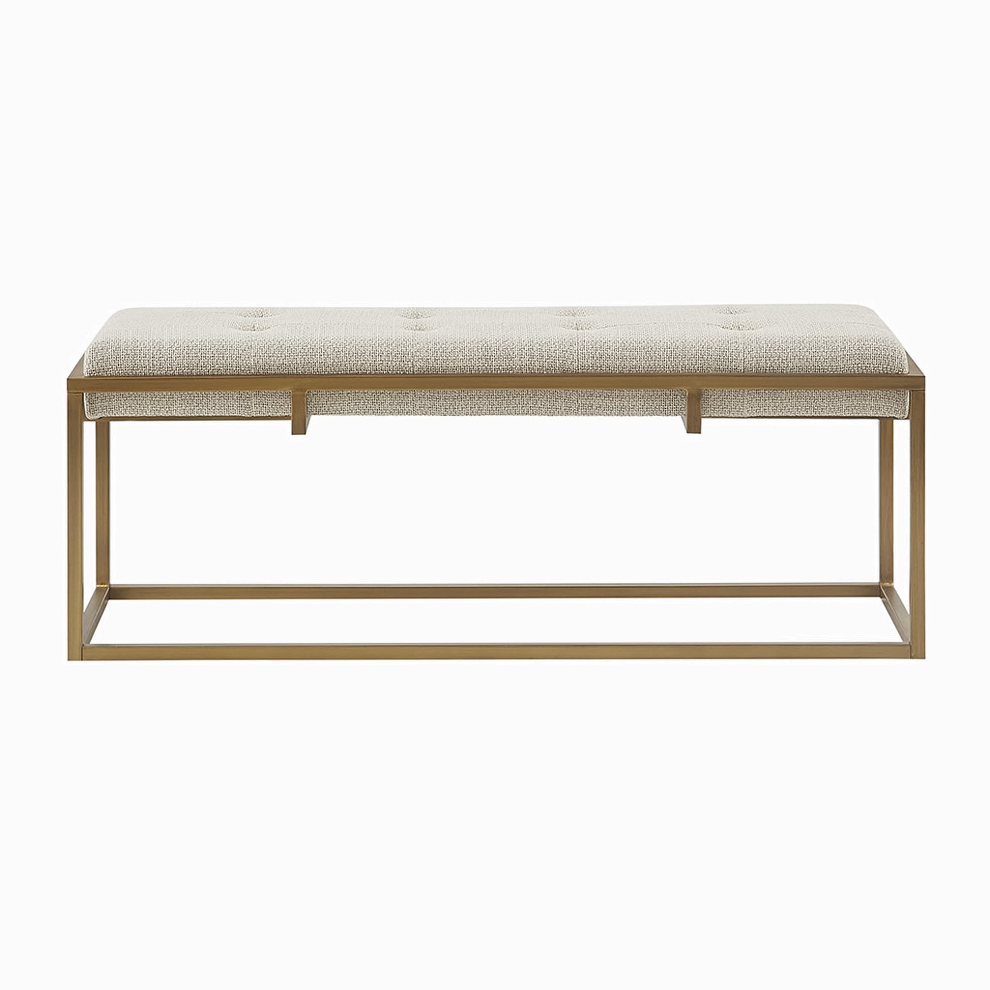 Linen Upholstered Button Tufted Bench with Open Metal Base, Large, Beige and Black