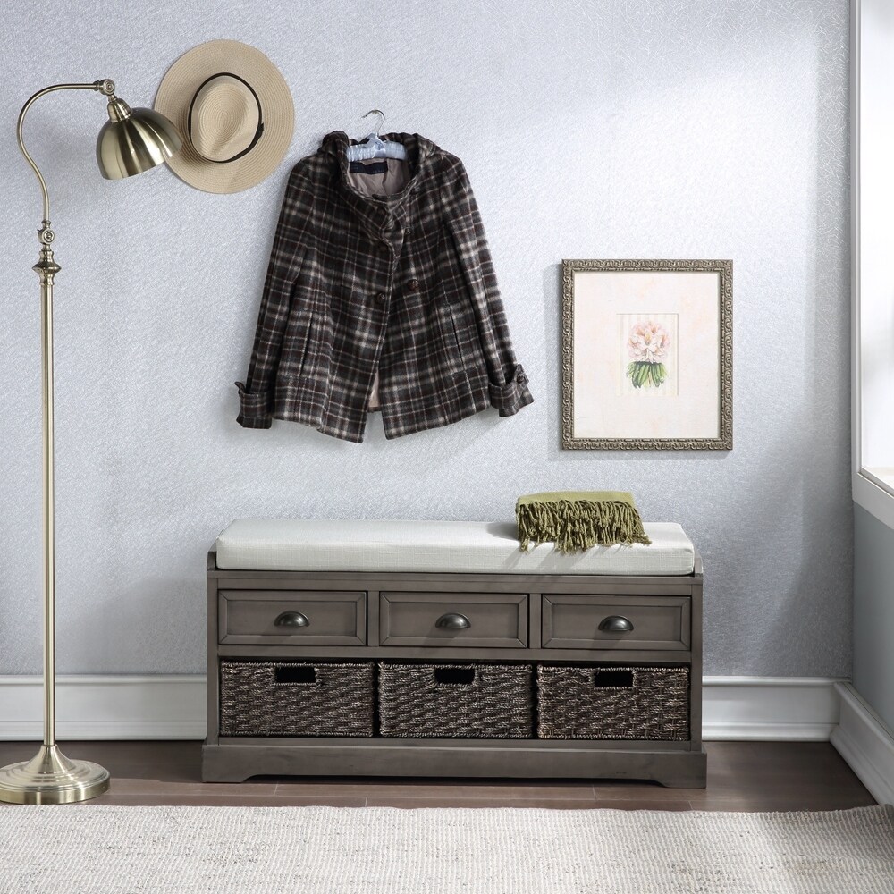 Homes Collection Wood Storage Bench with 3 Drawers and 3 Baskets