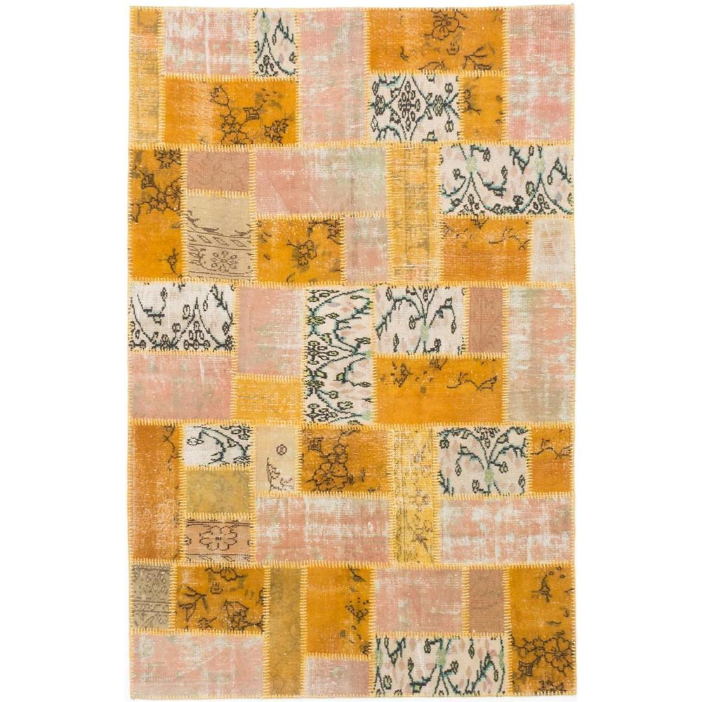 Hand-knotted Color Patchwork Black Wool Rug