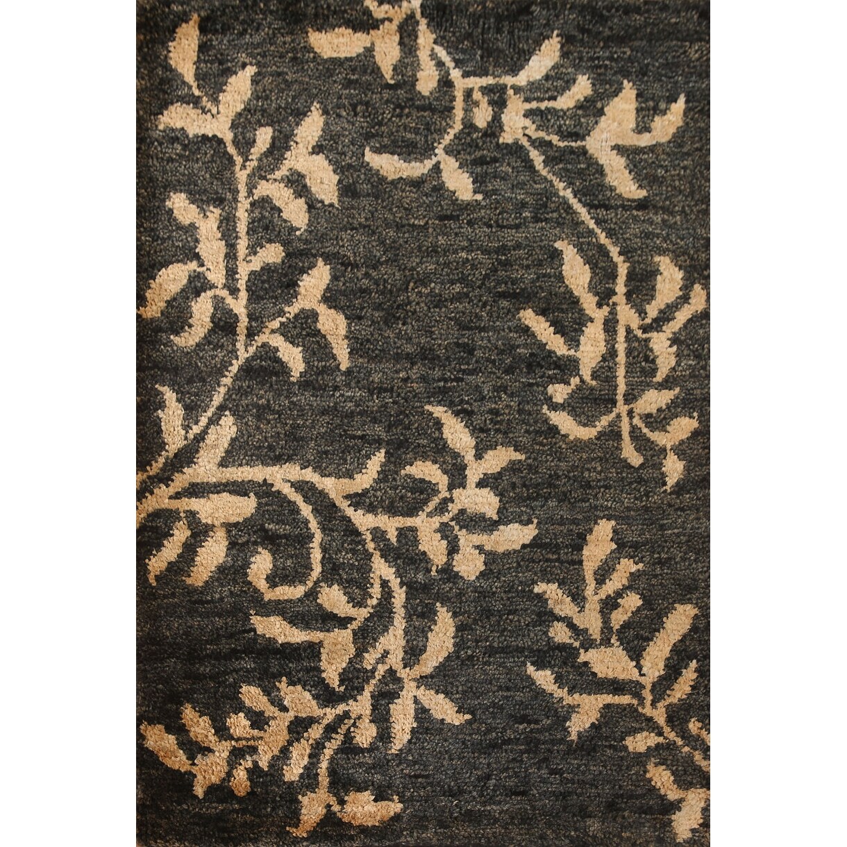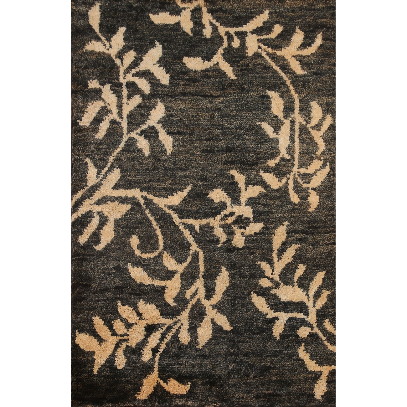 Hand Knotted Silk 6'x9' Area Rug Floral Gray Black