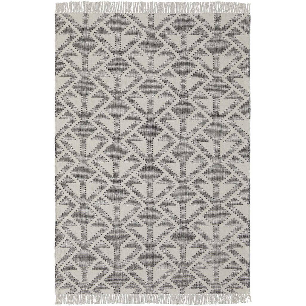 HomeRoots 5' X 8' Black Ivory And Gray Wool Geometric Dhurrie Flatweave Handmade Area Rug With Fringe - 5' x 8'