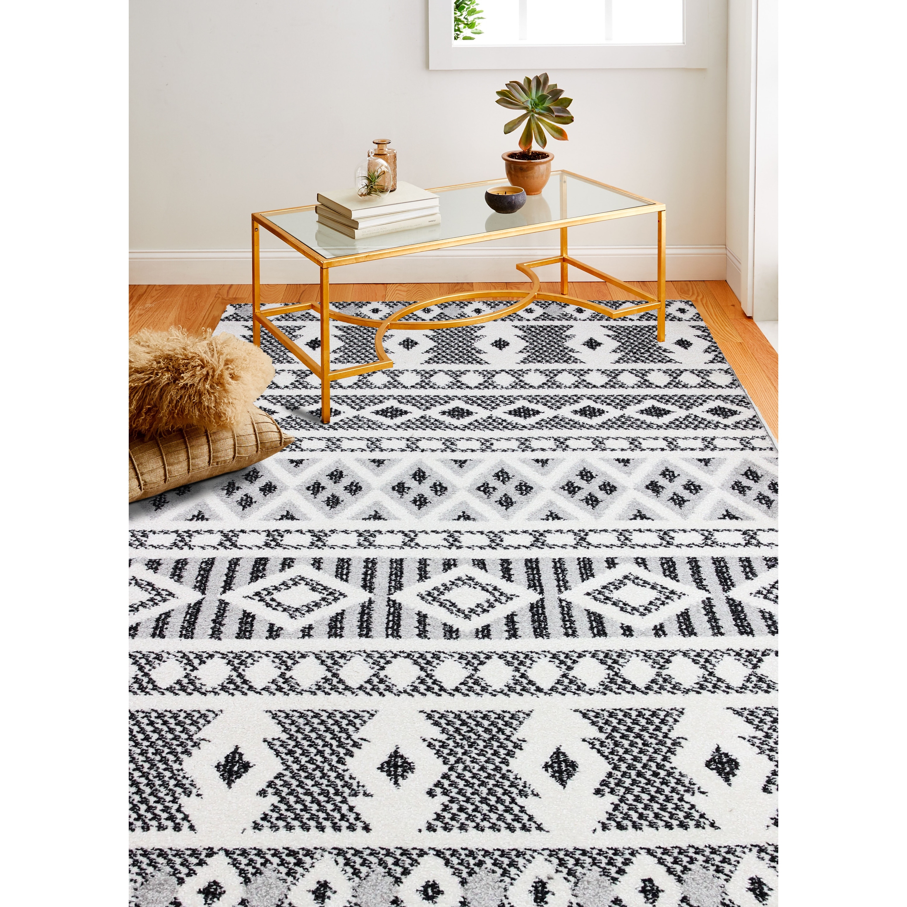 Black Ivory Machine Woven Geometric Indoor Area Rug