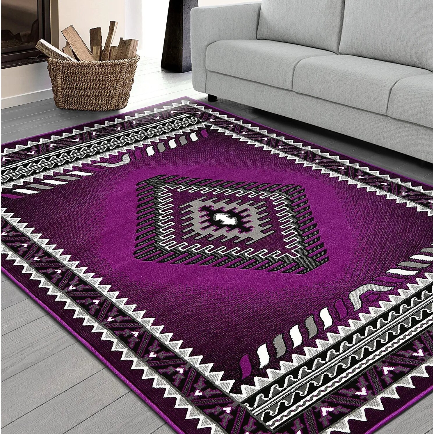 HR Traditional Southwestern Area Rugs Purple Gray and Black