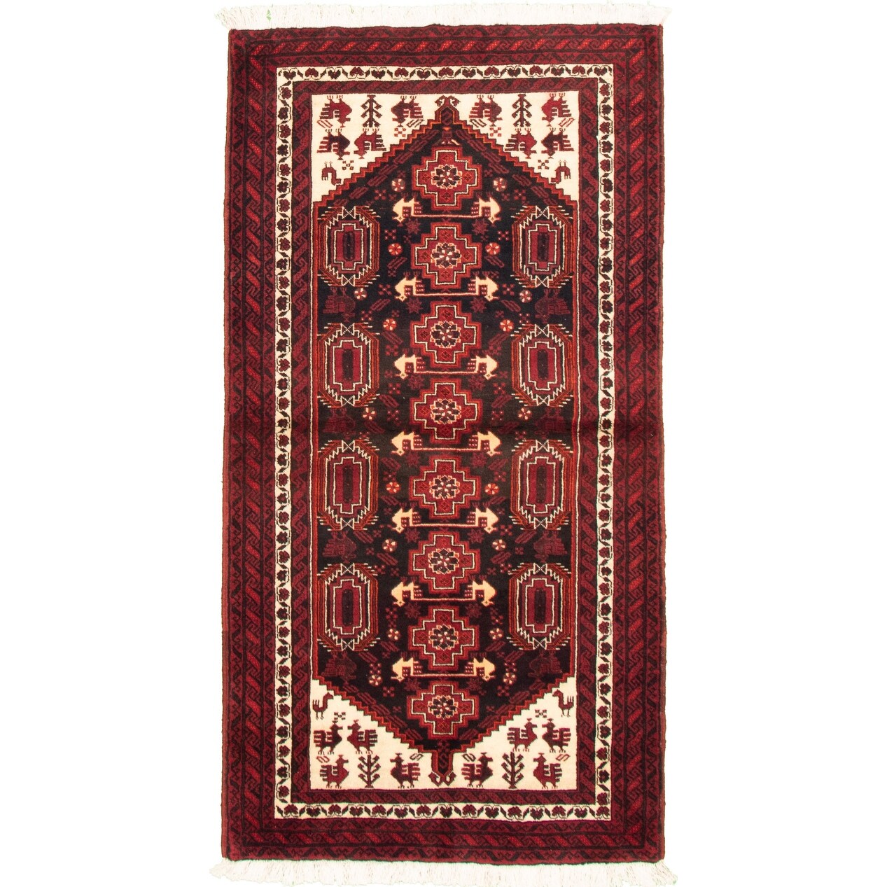 ECARPETGALLERY Hand-knotted Royal Baluch Black, Red Wool Rug - 3'3 x 6'3