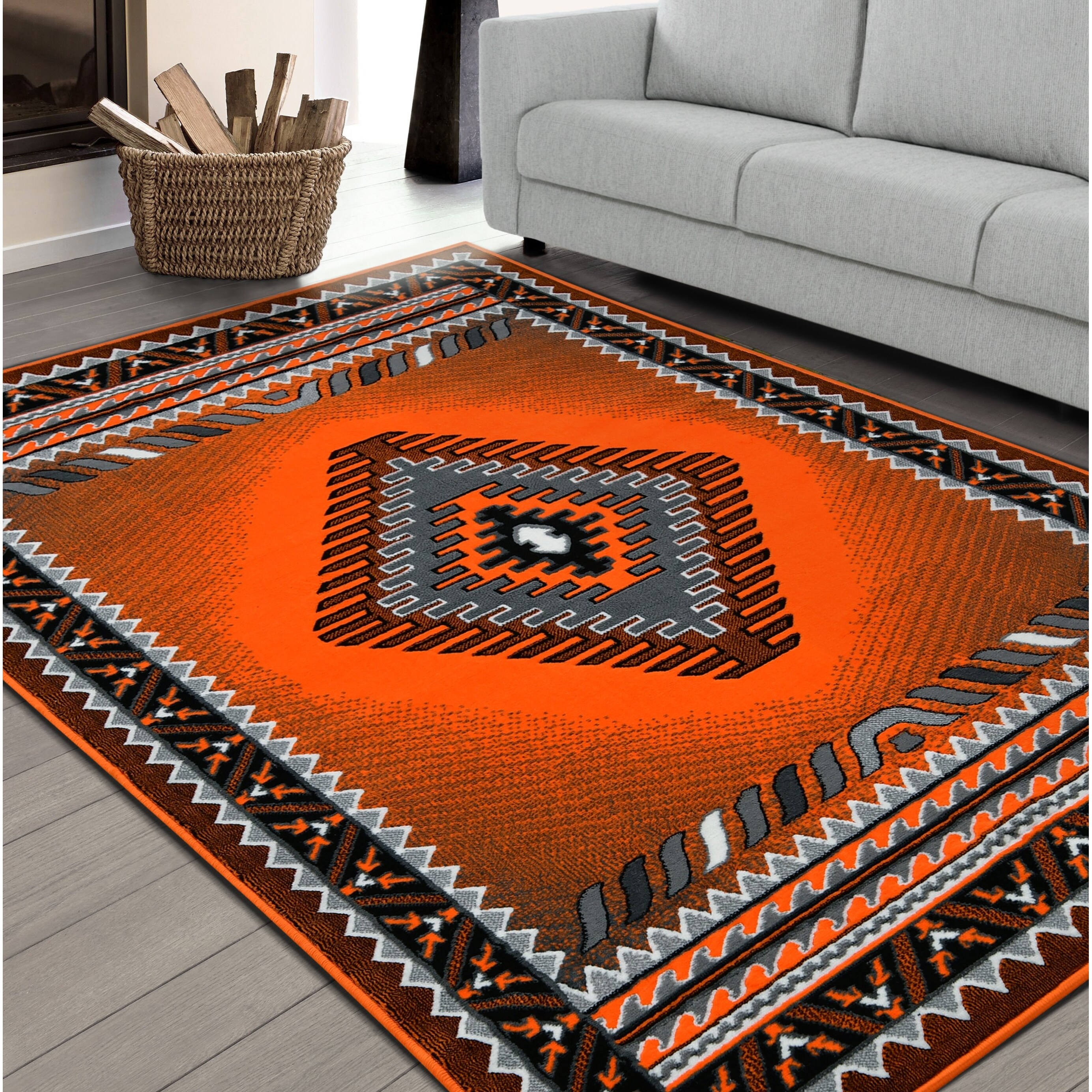 HR Traditional southwestern Area Rugs Orange Gray and Black