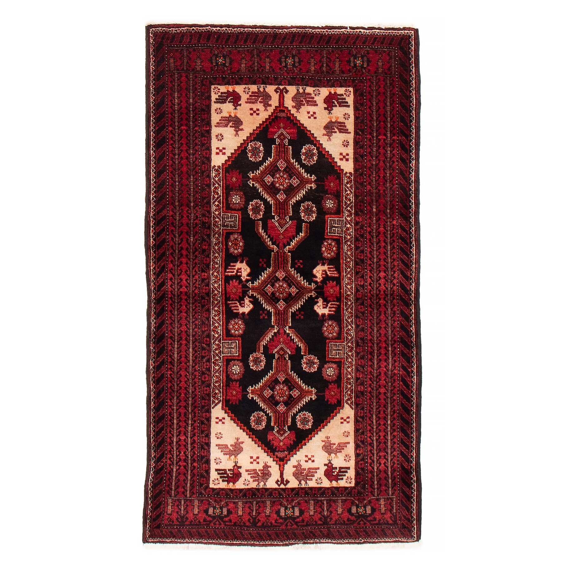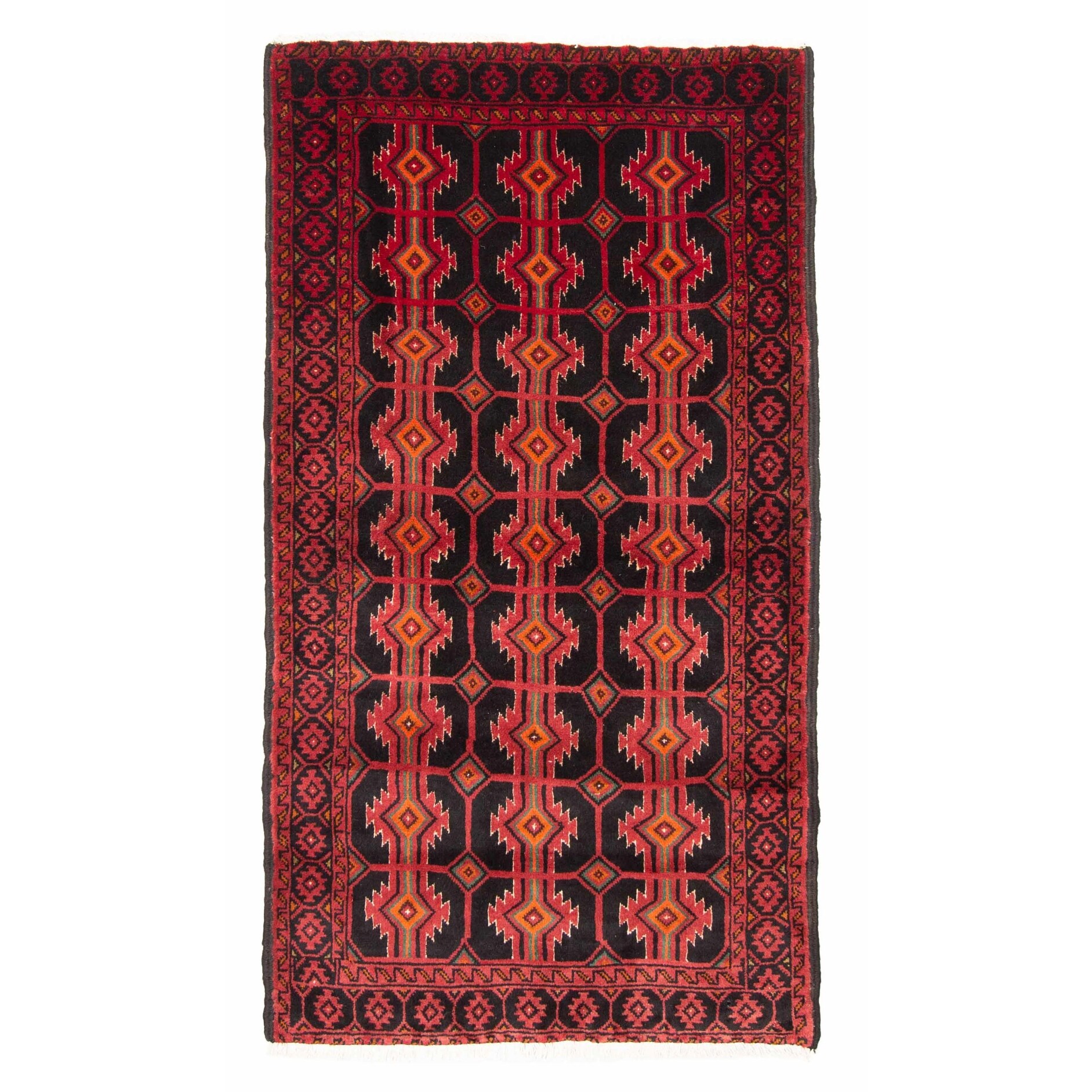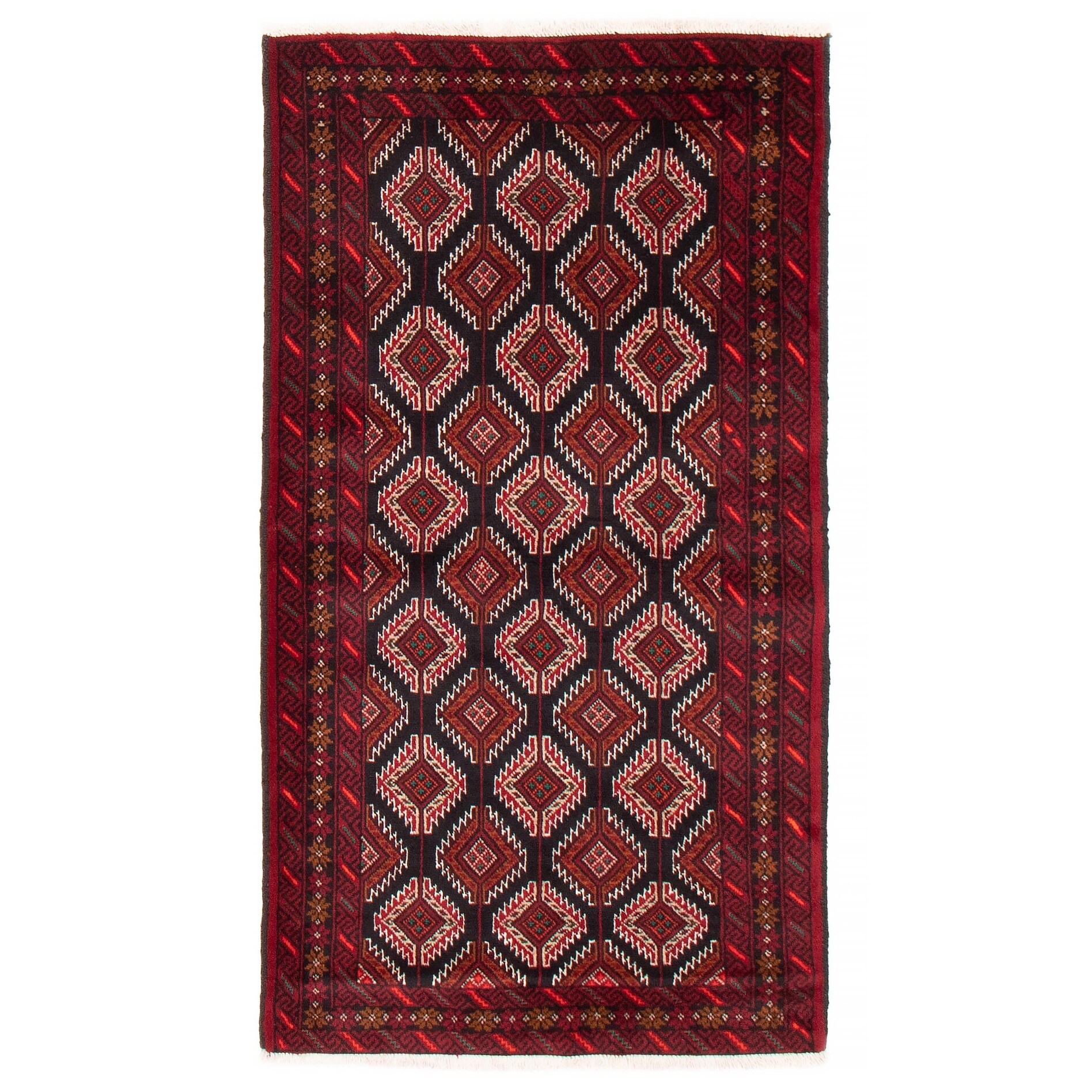 ECARPETGALLERY Hand-knotted Baluch Black, Red Wool Rug - 3'3 x 5'7