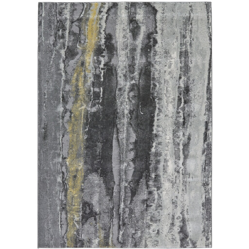 HomeRoots 7' X 10' Gray And Black Abstract Stain Resistant Area Rug - 7' x 7' Round