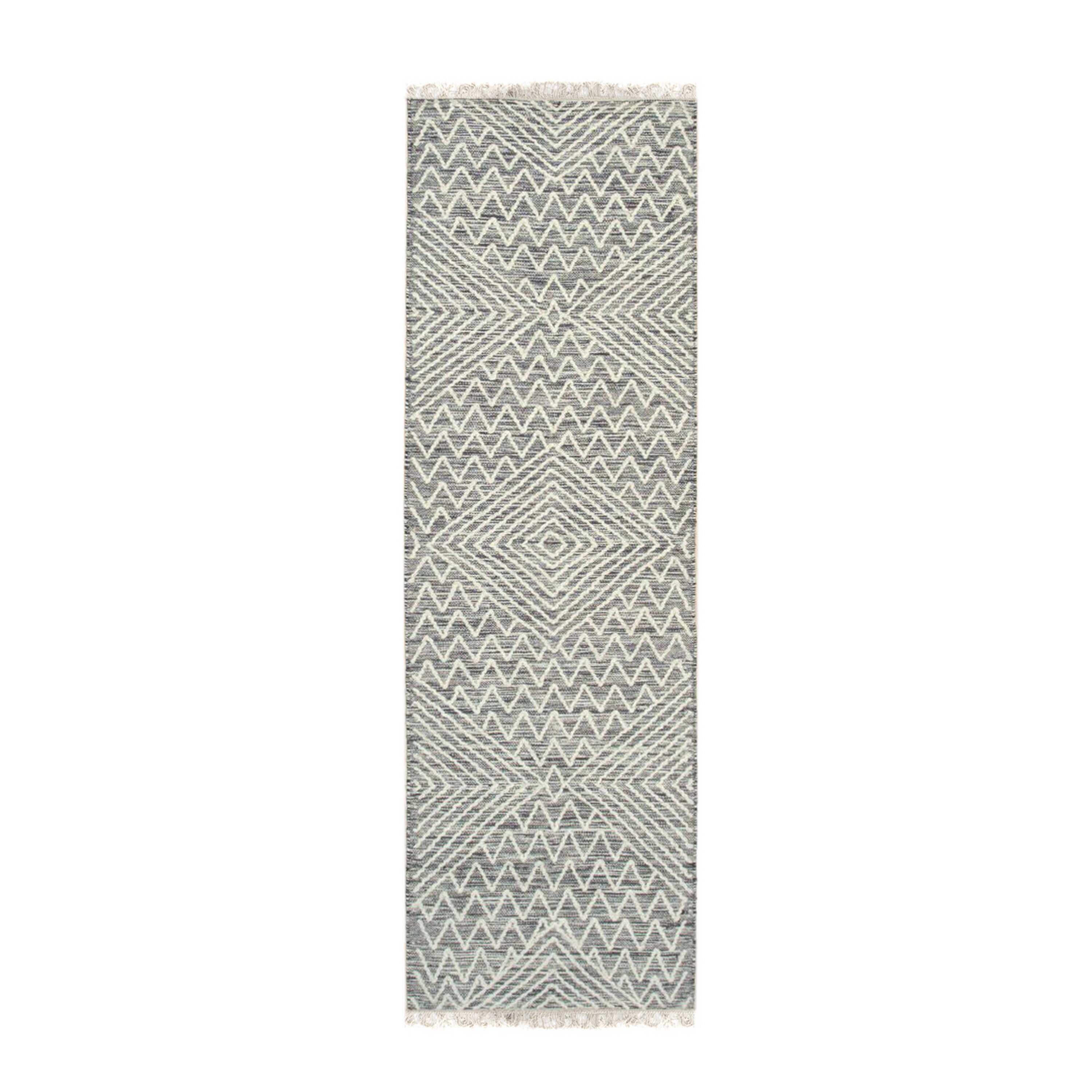 Shahbanu Rugs Charcoal Black Wool and Plant Based Silk Hand Loomed Modern Design Jacquard Runner Oriental Rug (2'6" x 8'0")