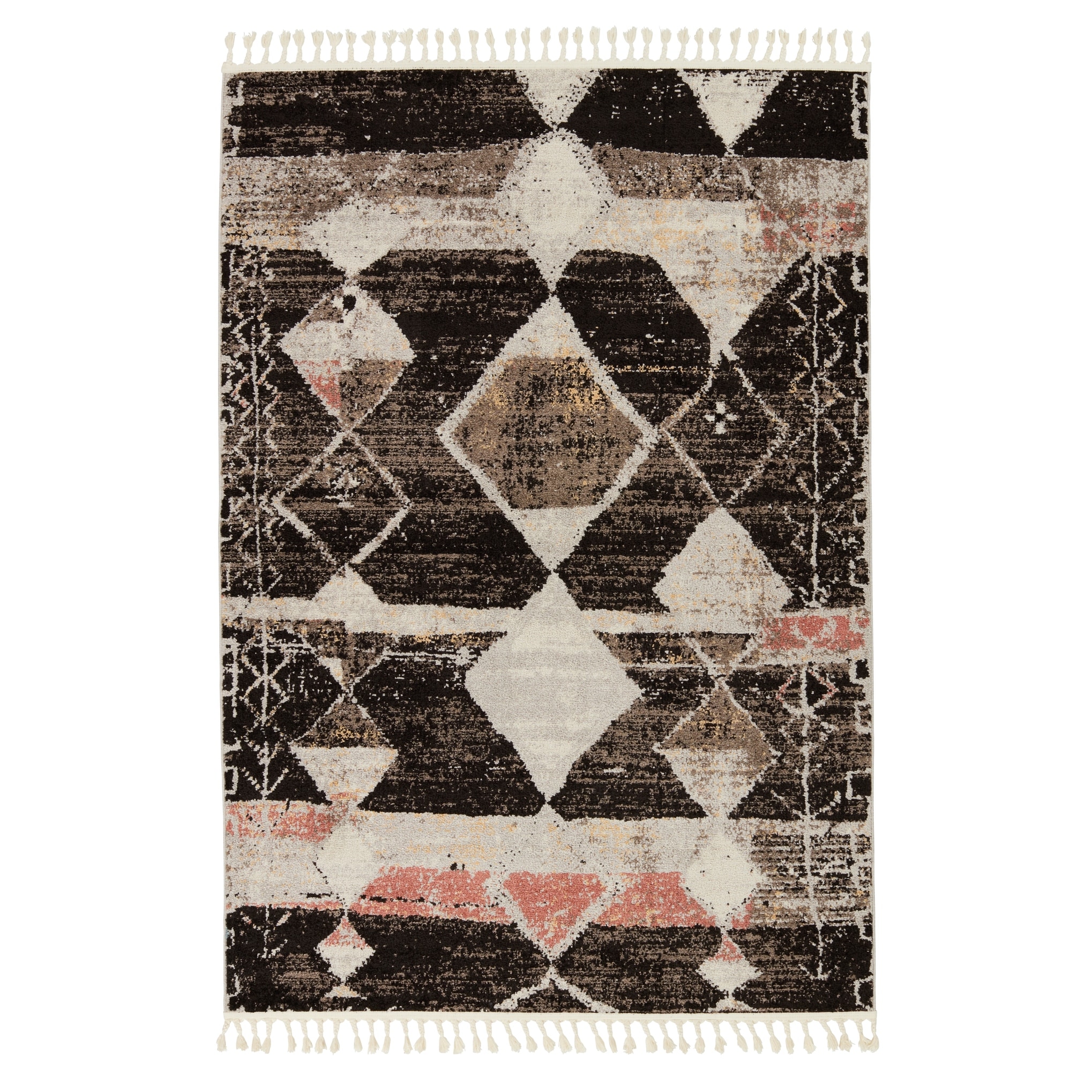 Tangelo Diamond Banded Tan/Black Ultimate Performance Area Rug