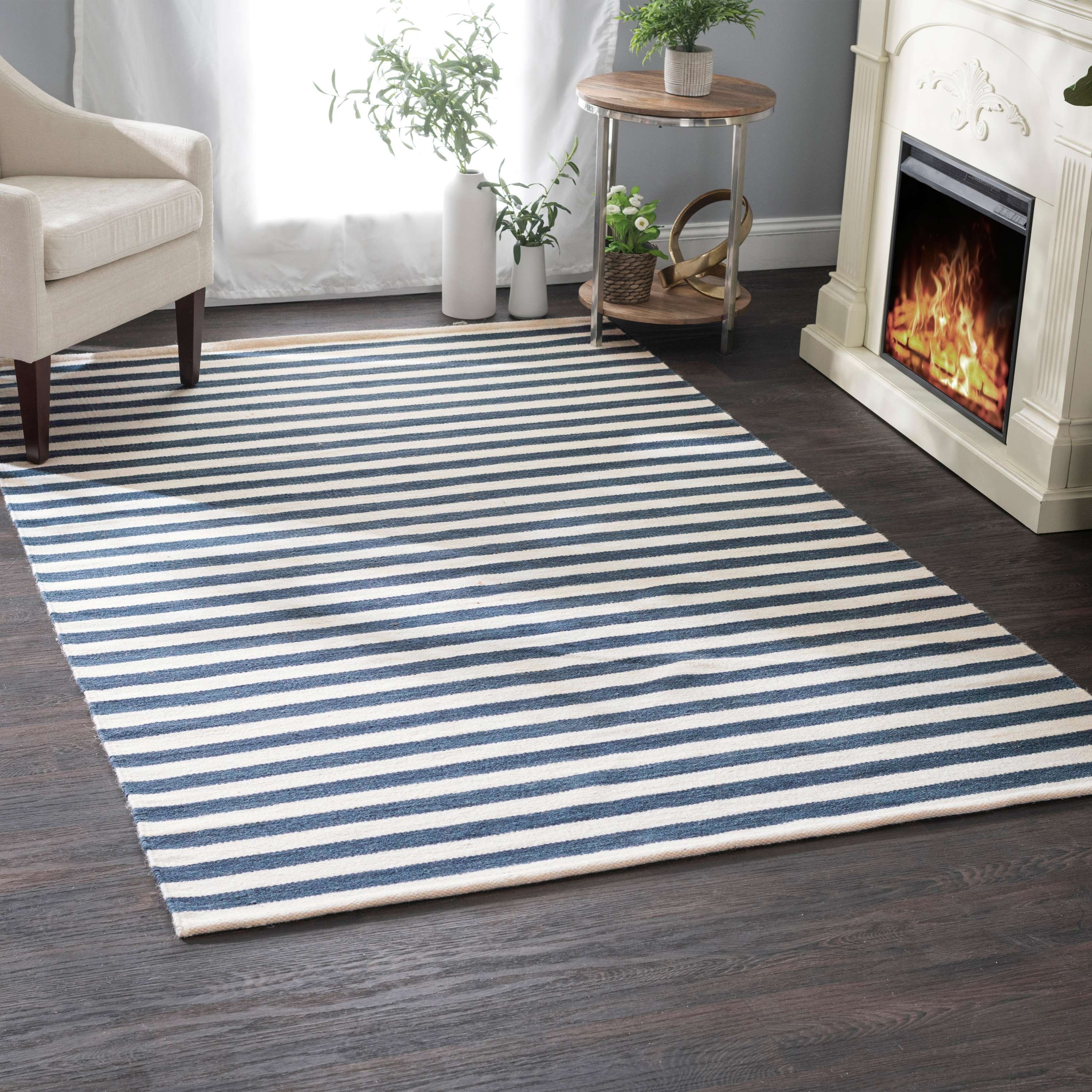 Ladder Stripe Black/Ivory Handwoven Wool Rug