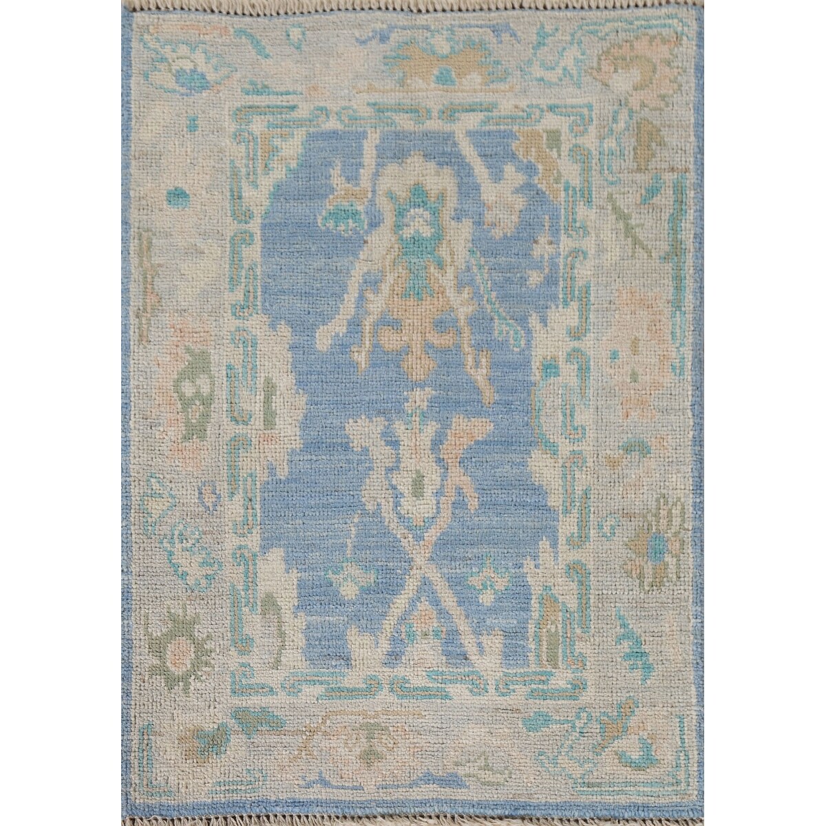 Light Blue Oushak Turkish Accent Rug Handmade Geometric Wool Carpet - 2'0"x 2'11"