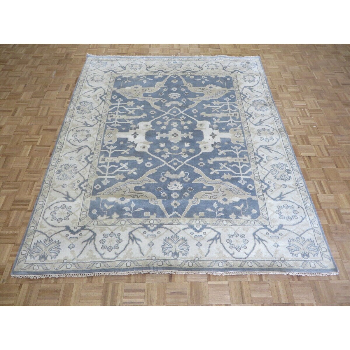Hand Knotted Light Blue Oushak with Wool Oriental Rug (8'1" x 9'11") - 8'1" x 9'11"