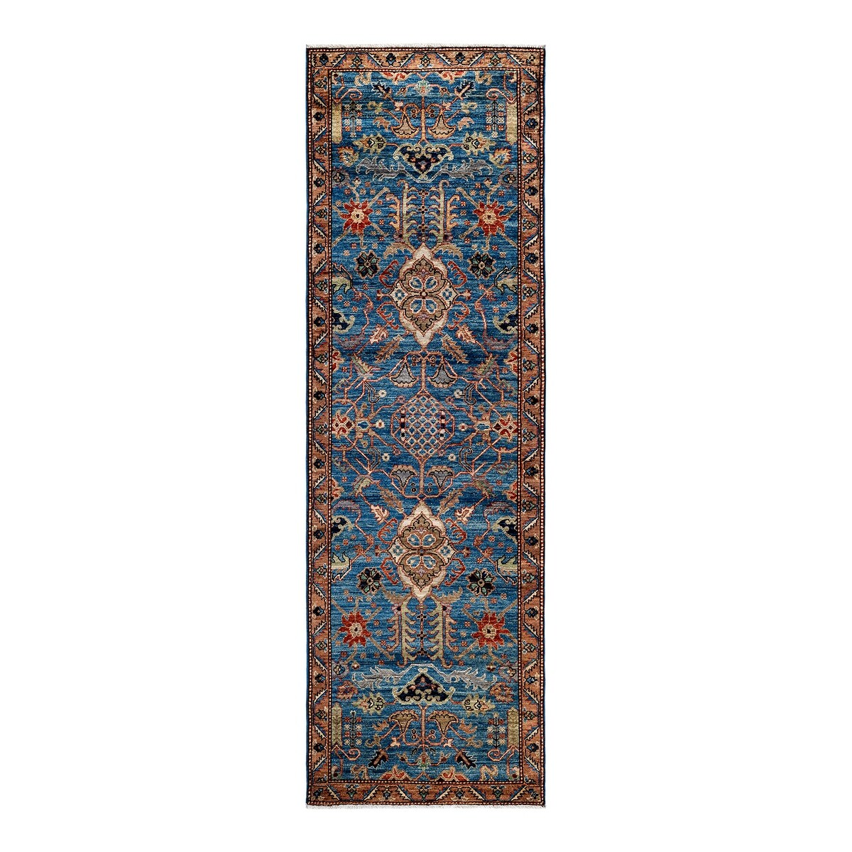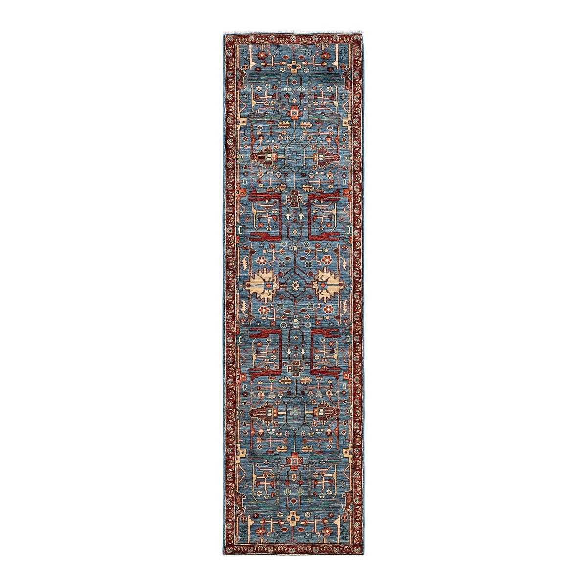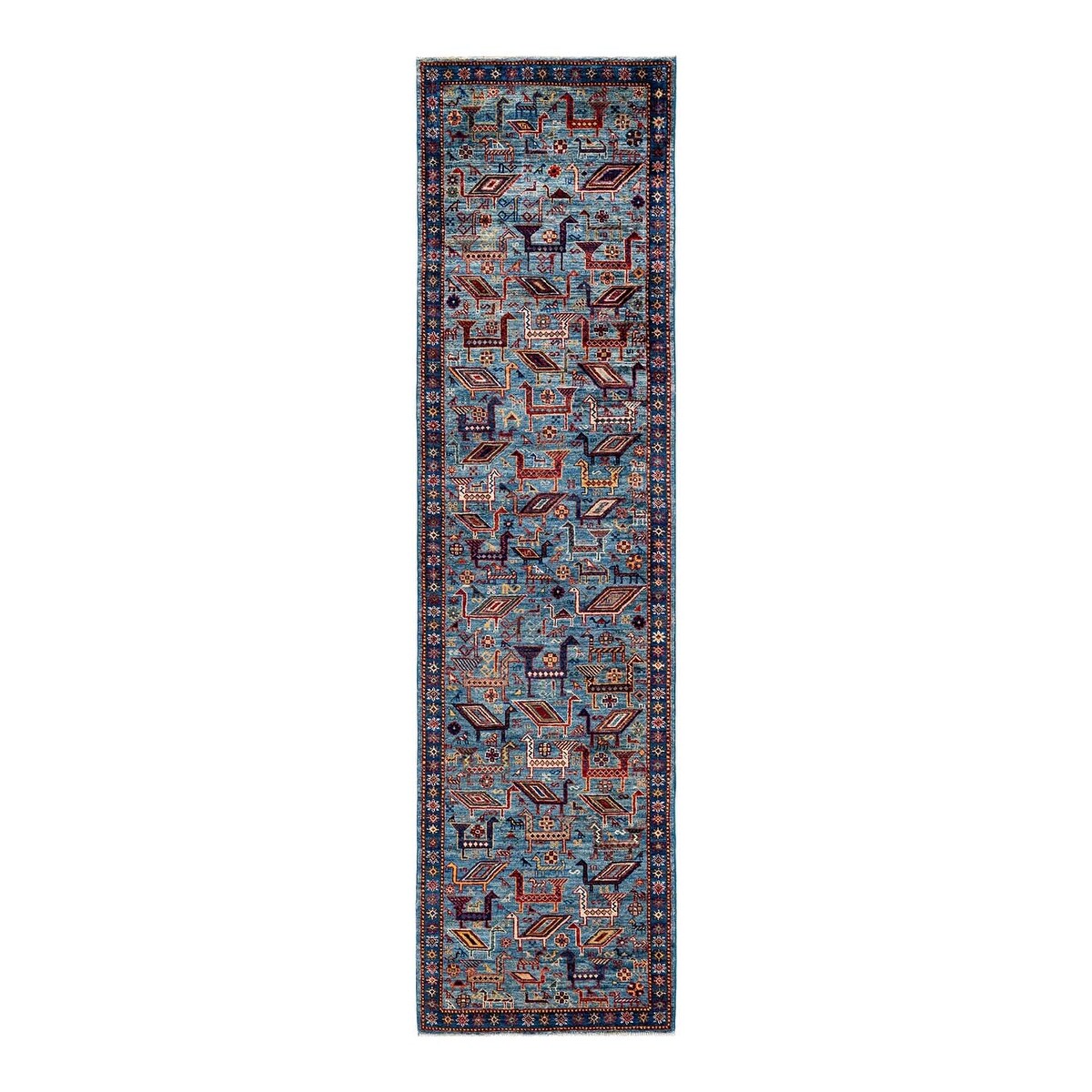 Hand Knotted Traditional Tribal Wool Light Blue Area Rug - 2' 9" x 9' 3"