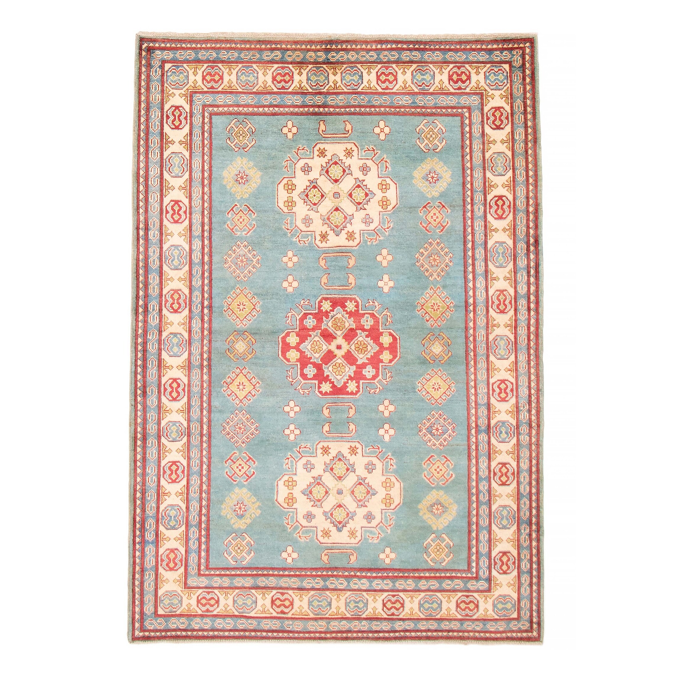 Light Blue Kazak Rug Hand-Knotted Wool Carpet - 4'11" x 6'6"