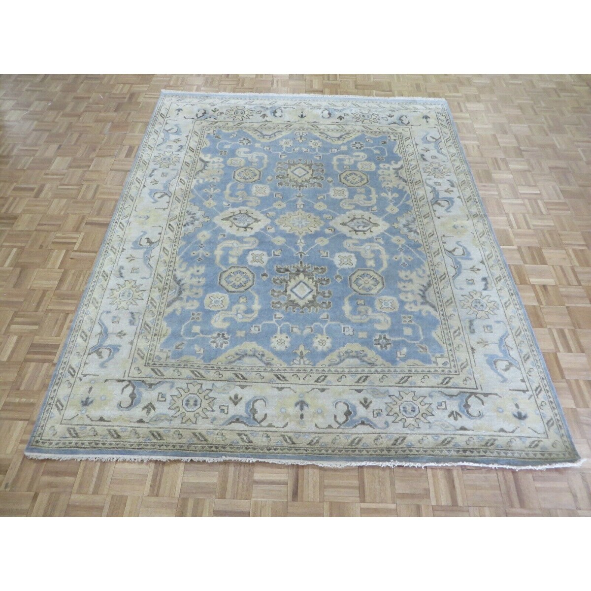 ECARPETGALLERY Hand-knotted Oushak Light Blue Wool Rug - 5'2 x 8'0