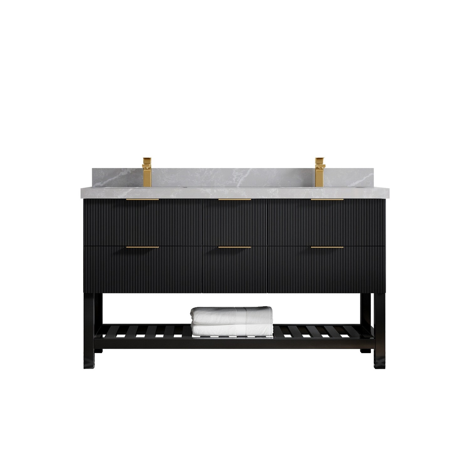 Willow Collections 60 x 22 in D Catalina Double Bowl Sink Bathroom Vanity with Quartz or Marble Countertop