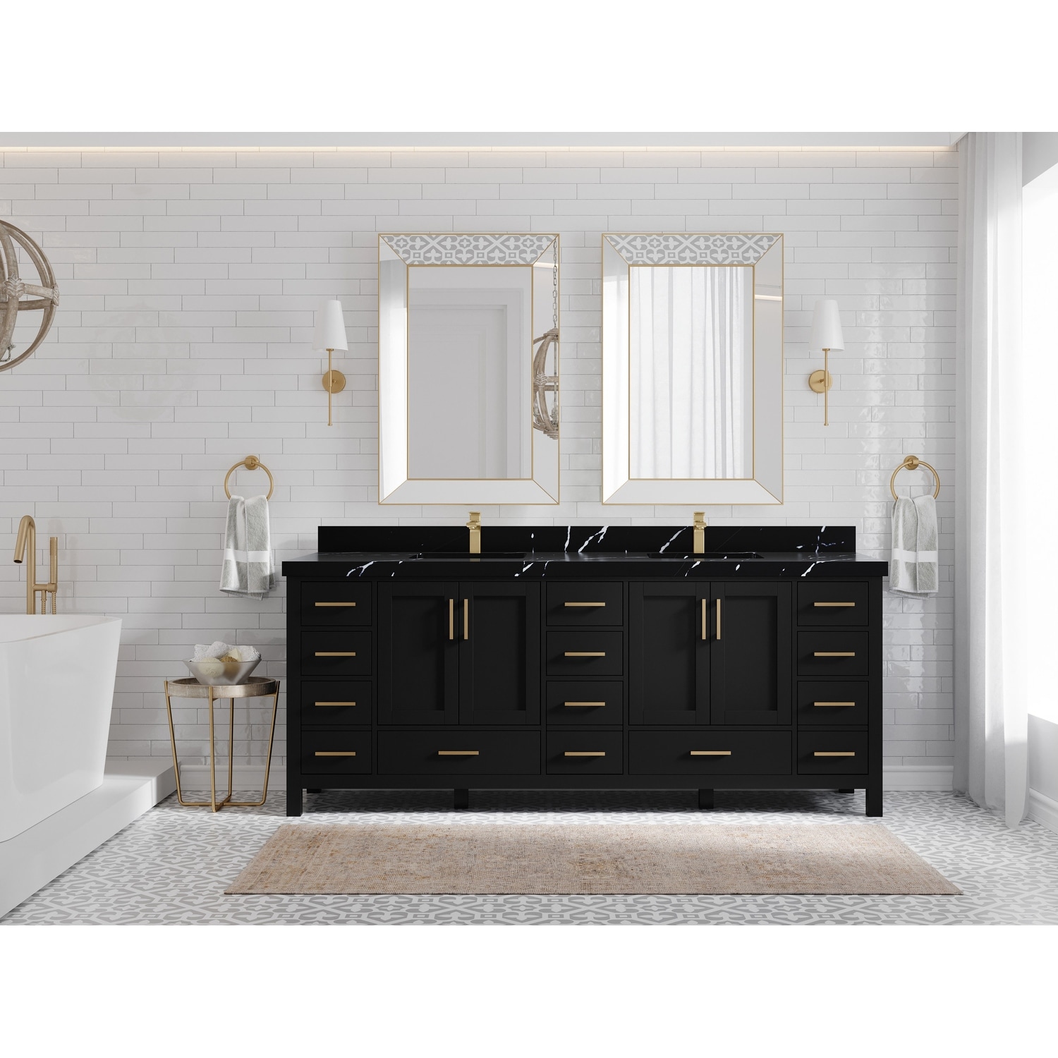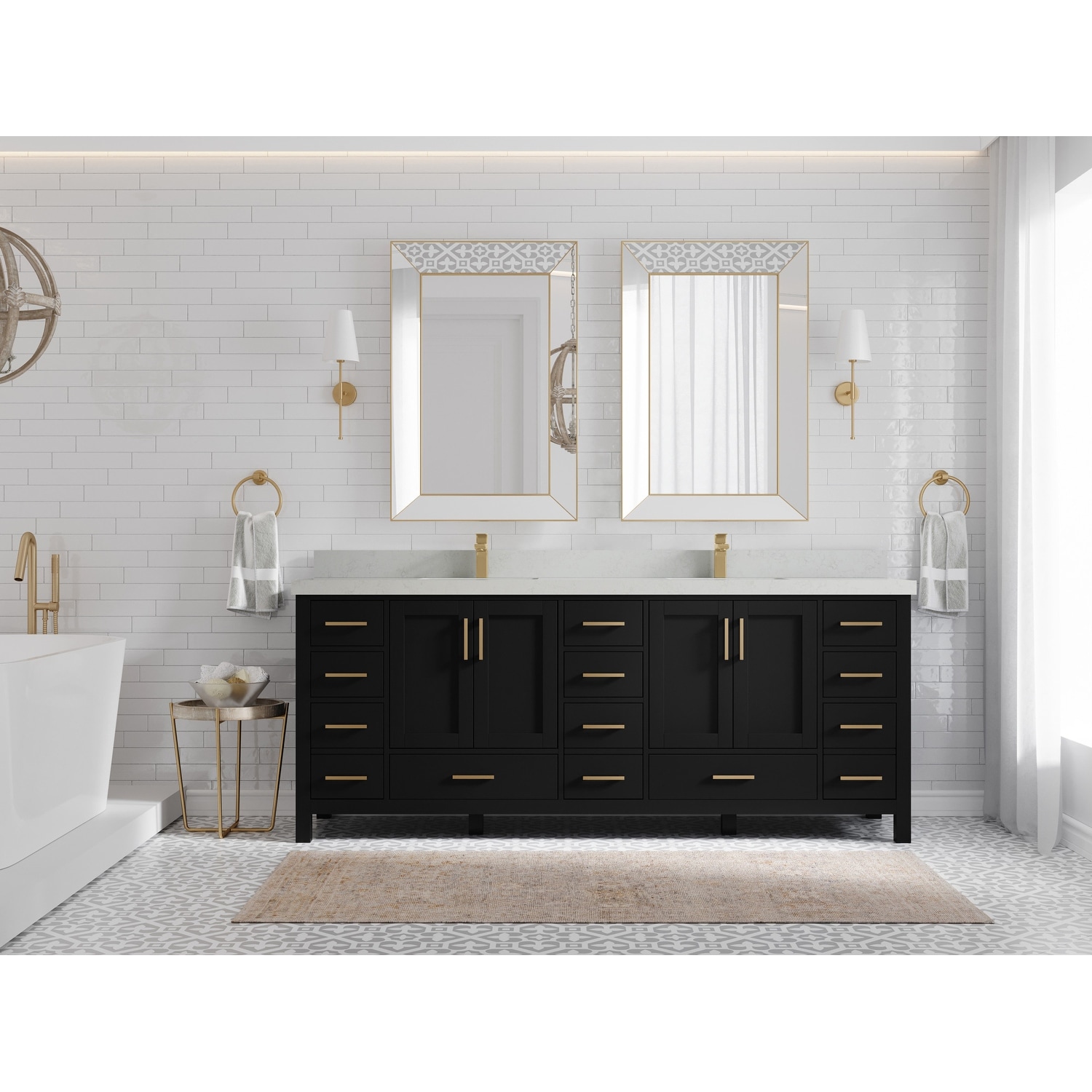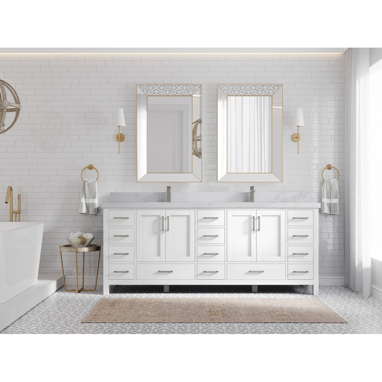 Willow Collection 84 in W x 22 in D x 36 in H Boston Double Bowl Sink Bathroom Vanity with Quartz or Marble Countertop