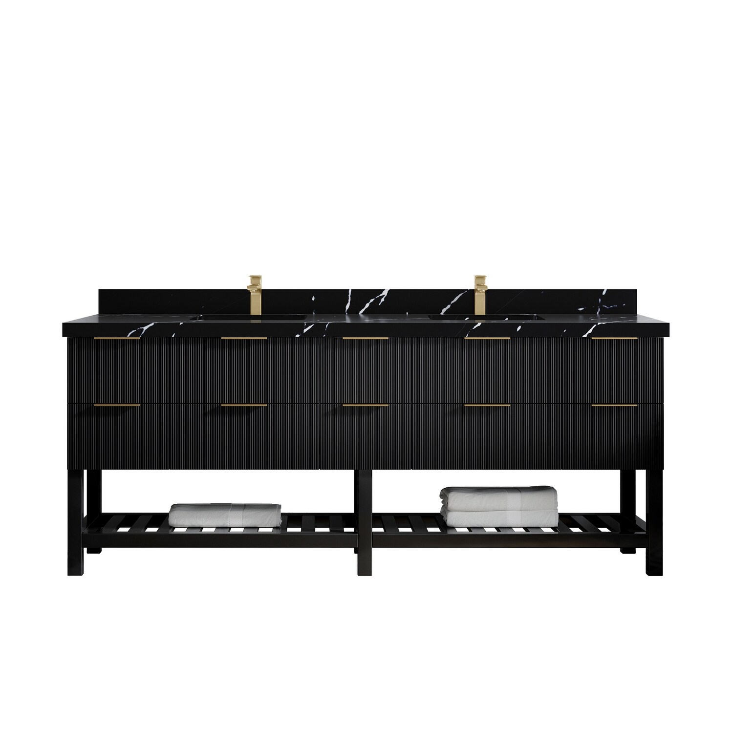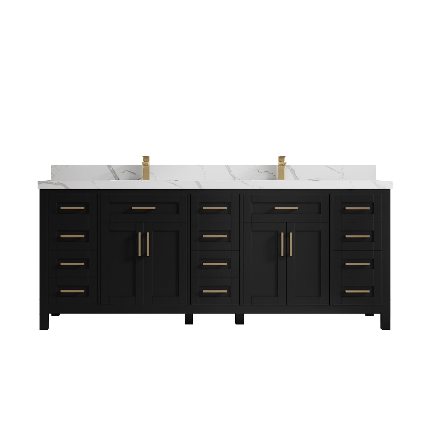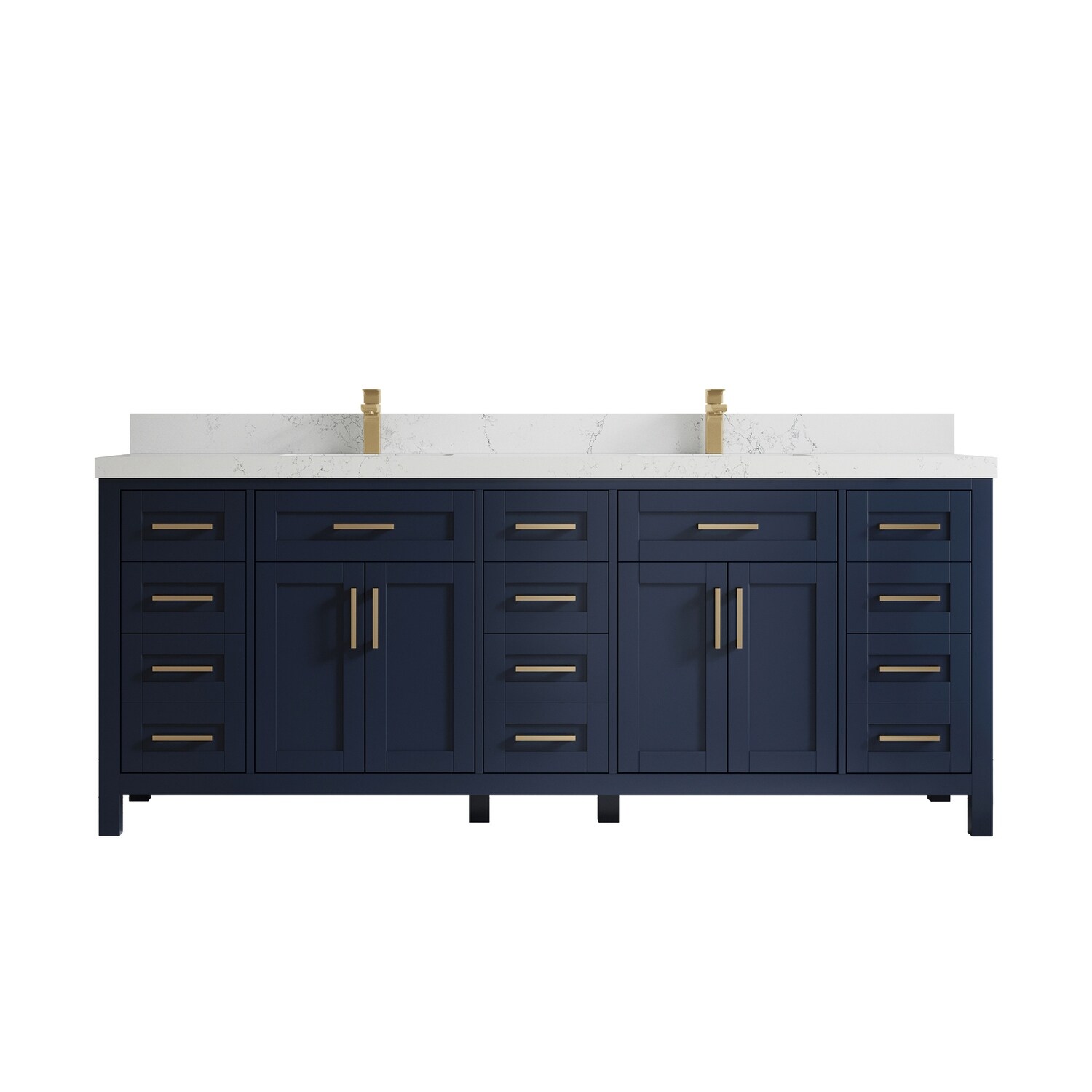 Willow Collection 84 in W x 22 in D x 36 in H Boston Double Bowl Sink Bathroom Vanity with Quartz or Marble Countertop