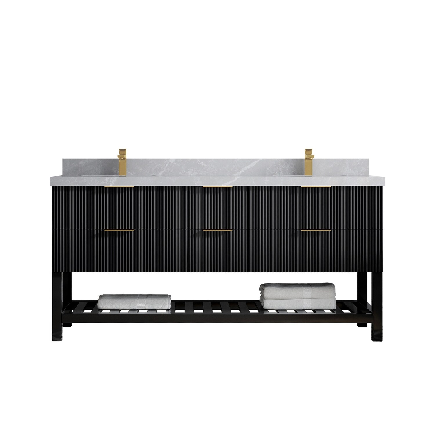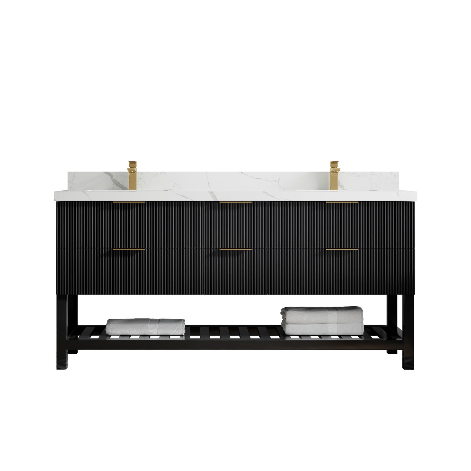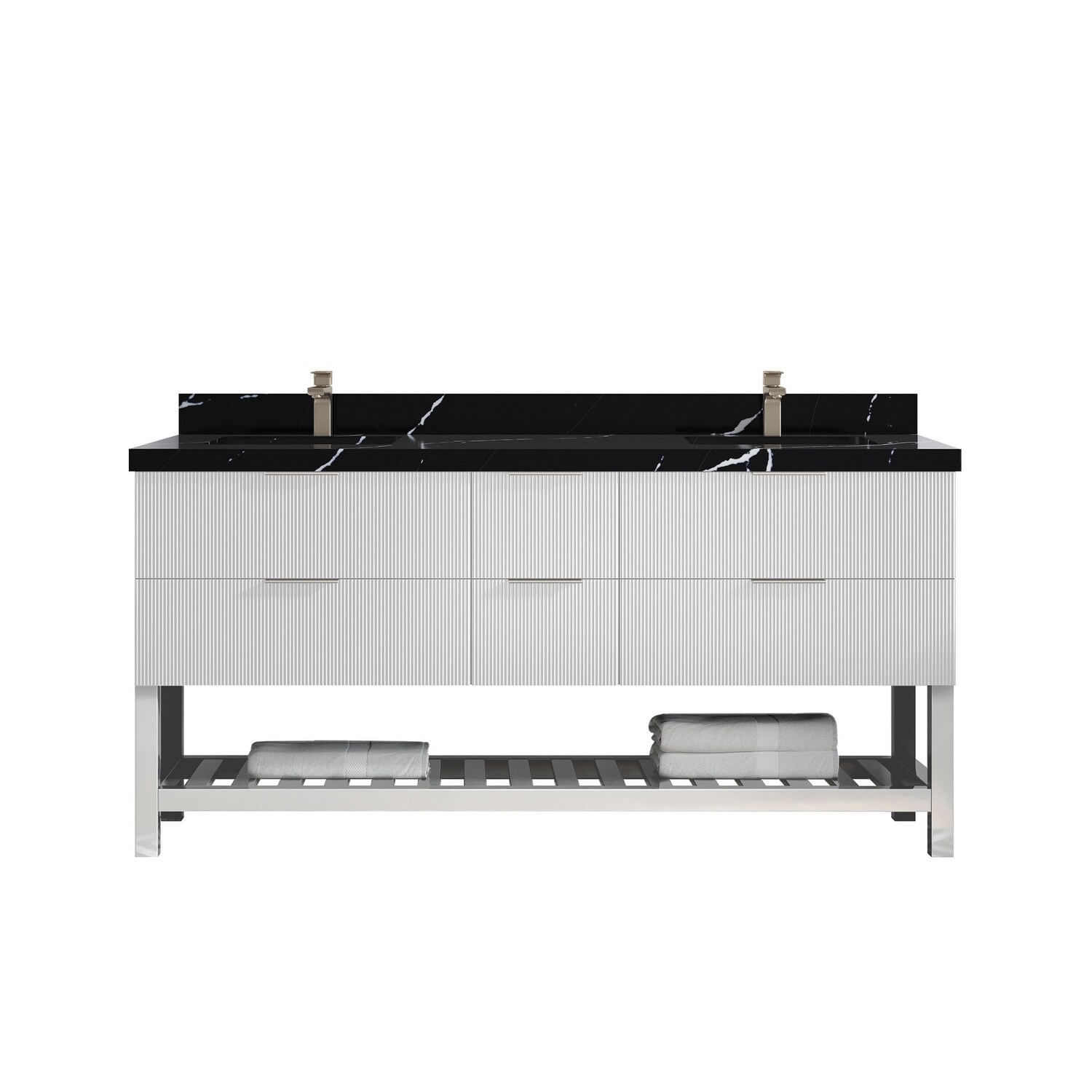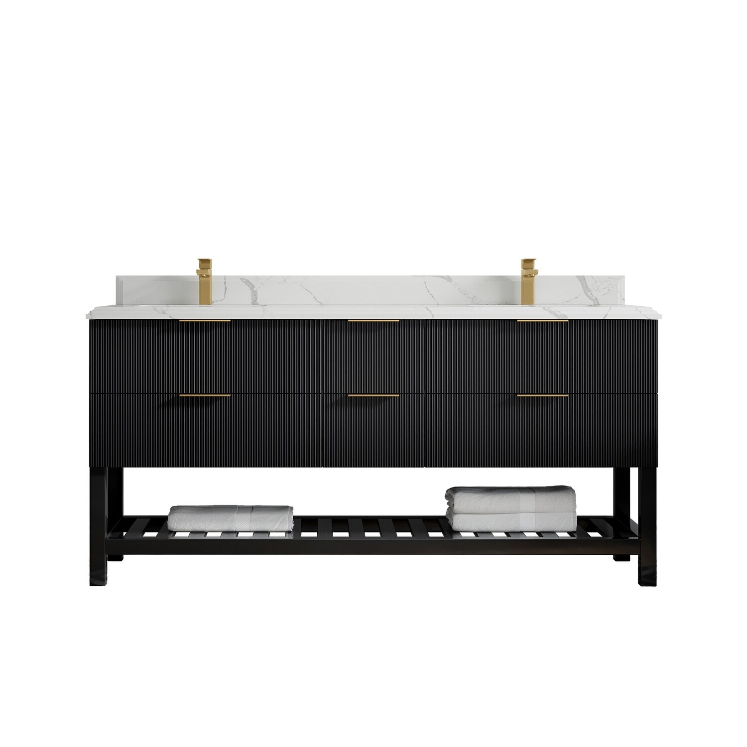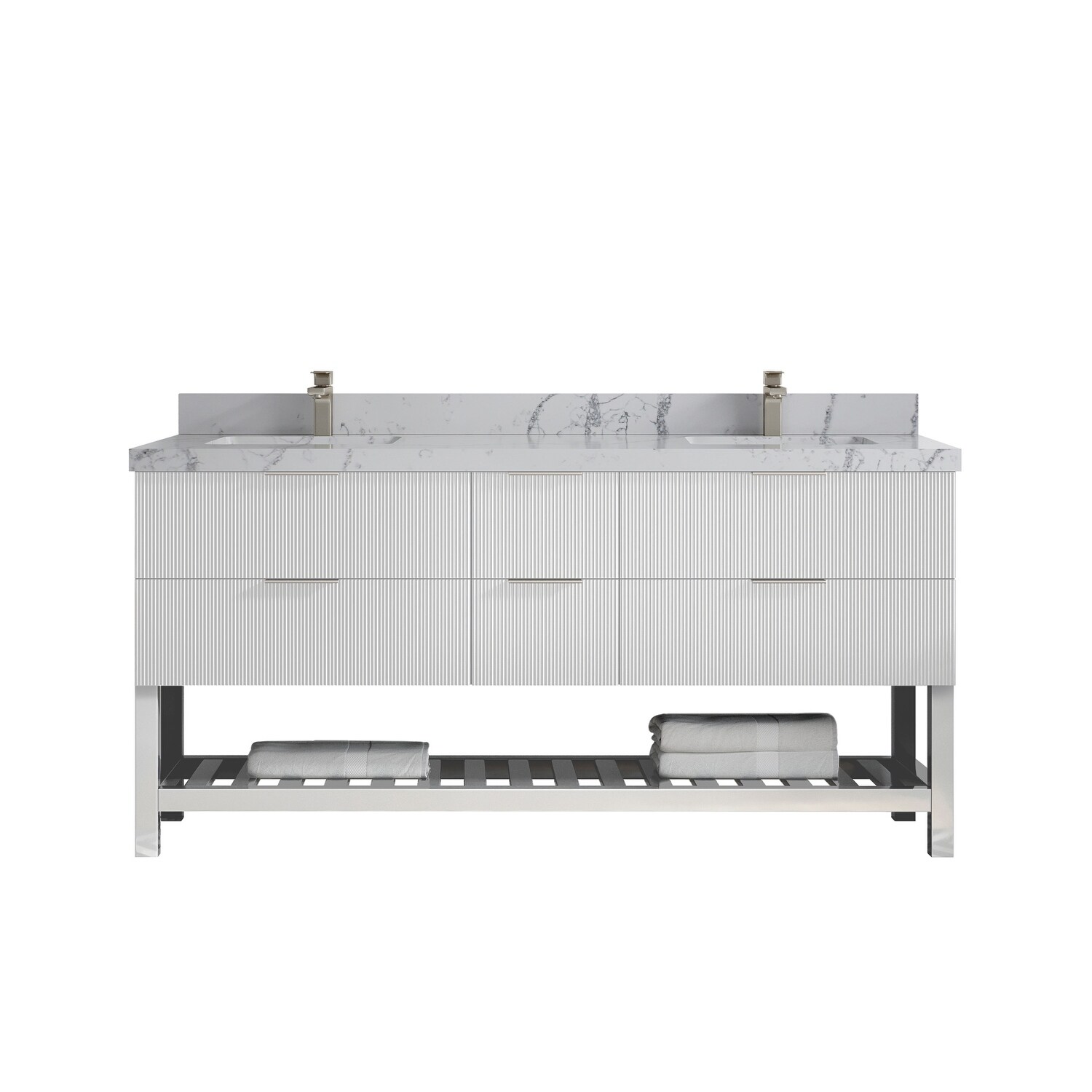 Willow Collections 72 x 22 in D Catalina Double Bowl Sink Bathroom Vanity with Quartz or Marble Countertop