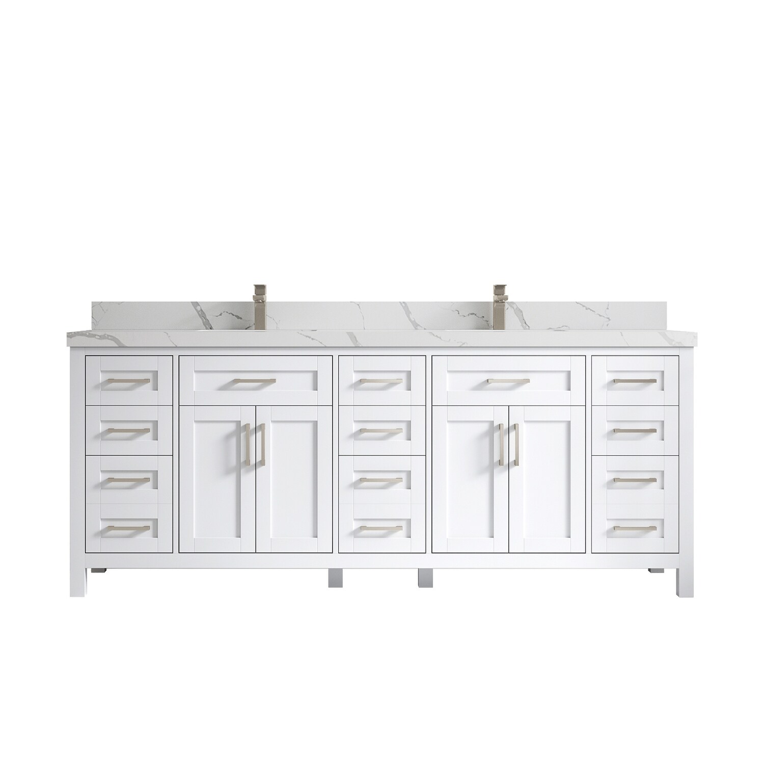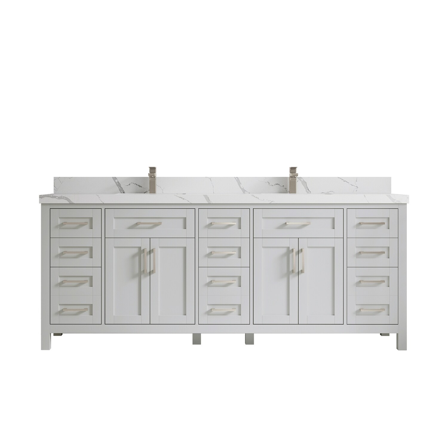 Willow Collections 84 x 22 in D Catalina Double Bowl Sink Bathroom Vanity with Quartz or Marble Countertop