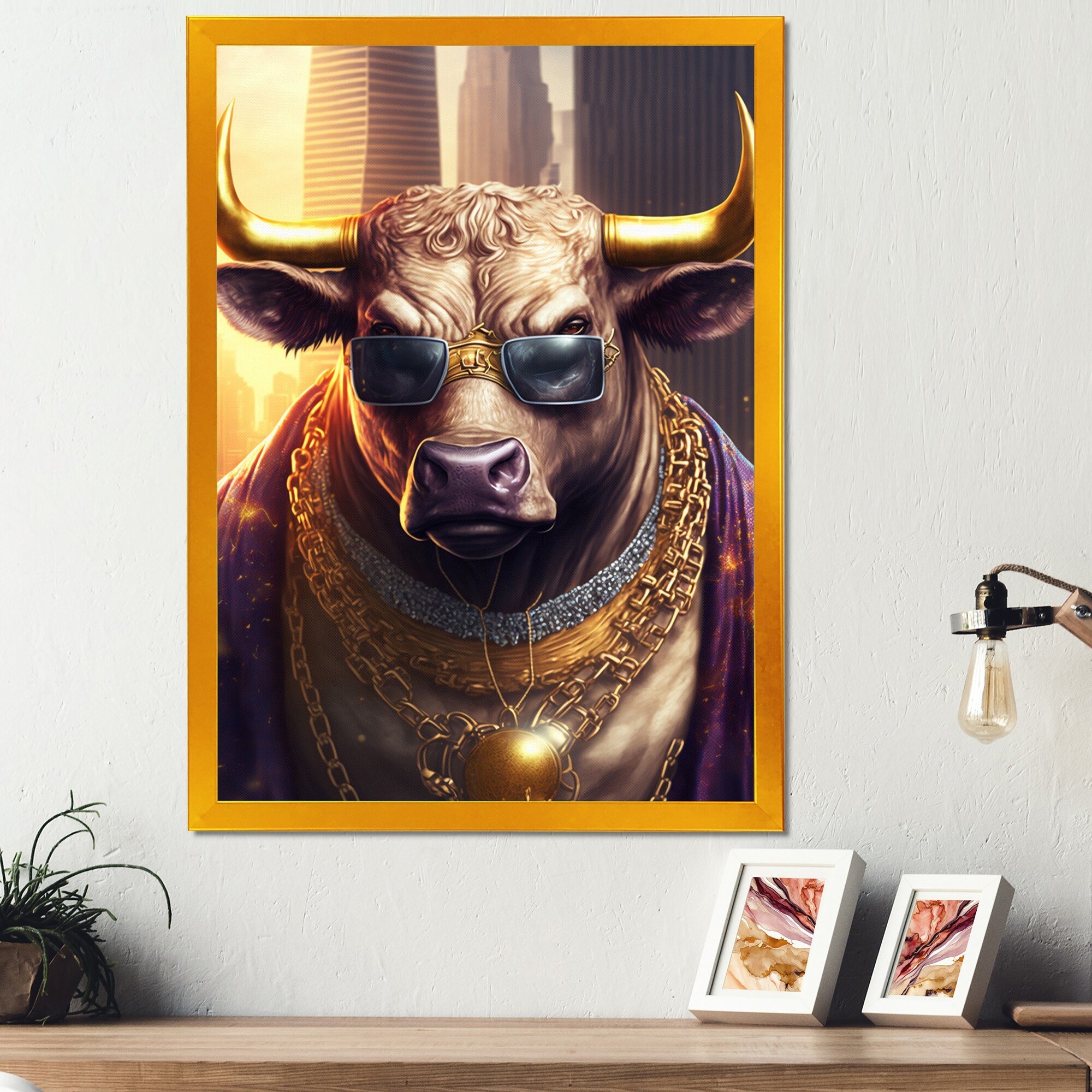 Designart "Bull Gangster in NYC II" Animals Framed Art Print