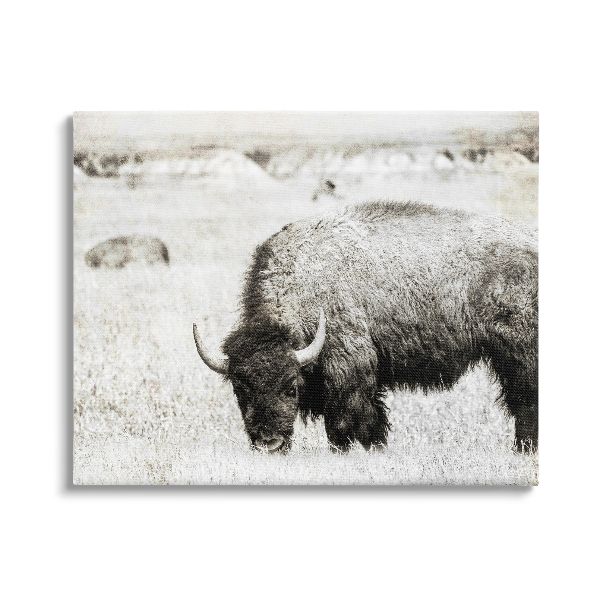 Stupell Farmland Country Bison Bull Grazing Pasture Monochrome Canvas Wall Art - Grey