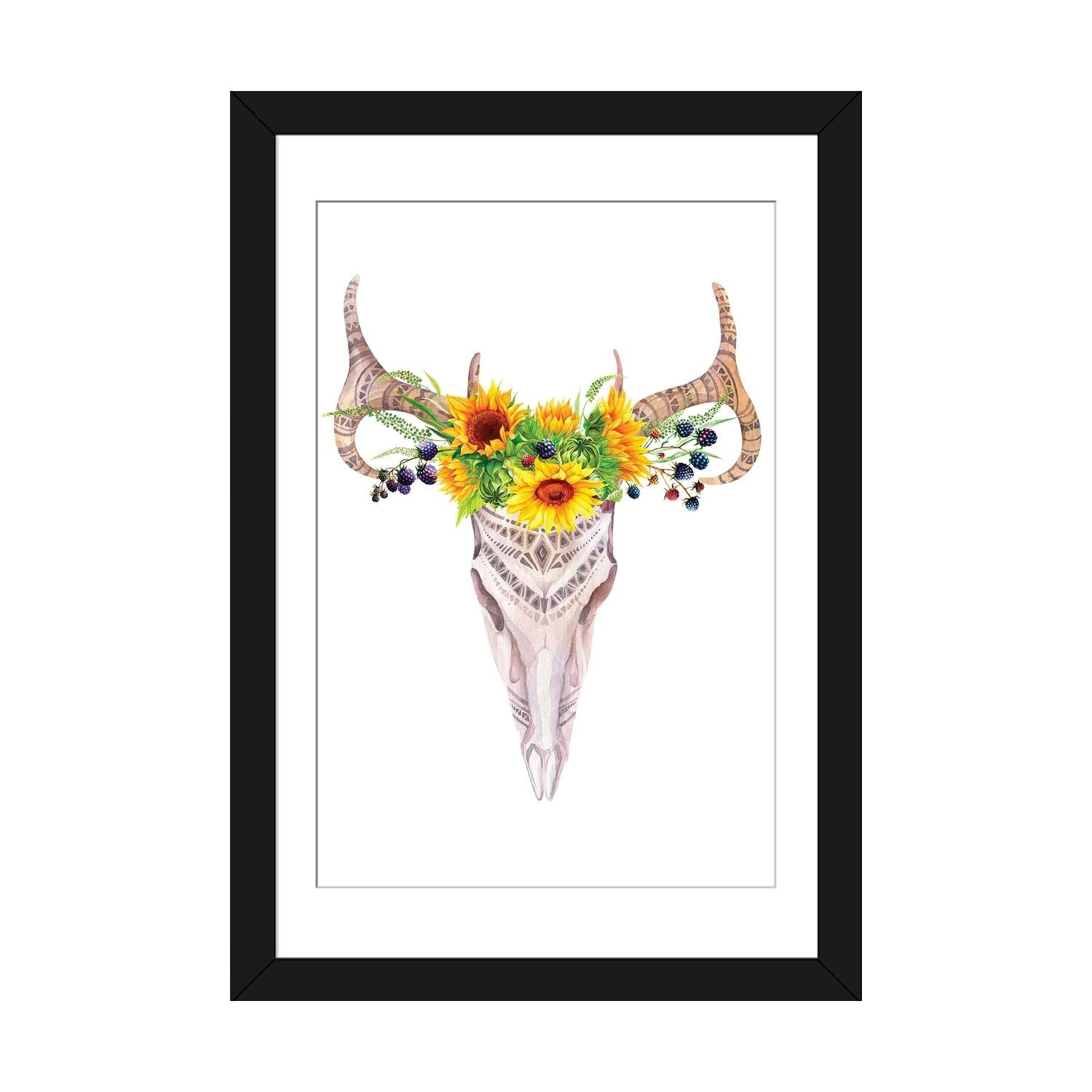 iCanvas "Bull Skull in Sunflower Garland" by Jania Sharipzhanova