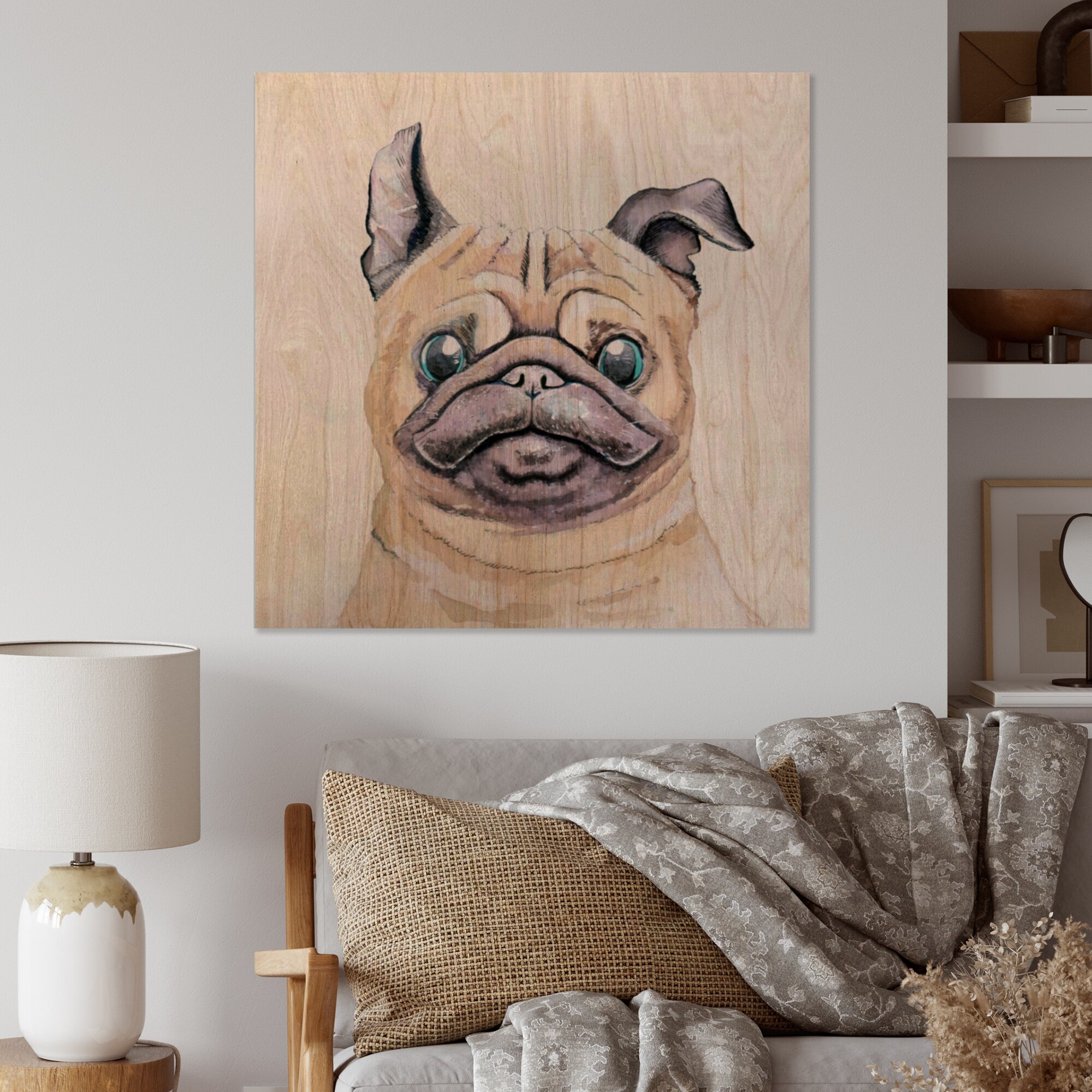 Designart 'Portrait Of a Bulldog' Traditional Wood Wall Art Panels - Natural Pine Wood