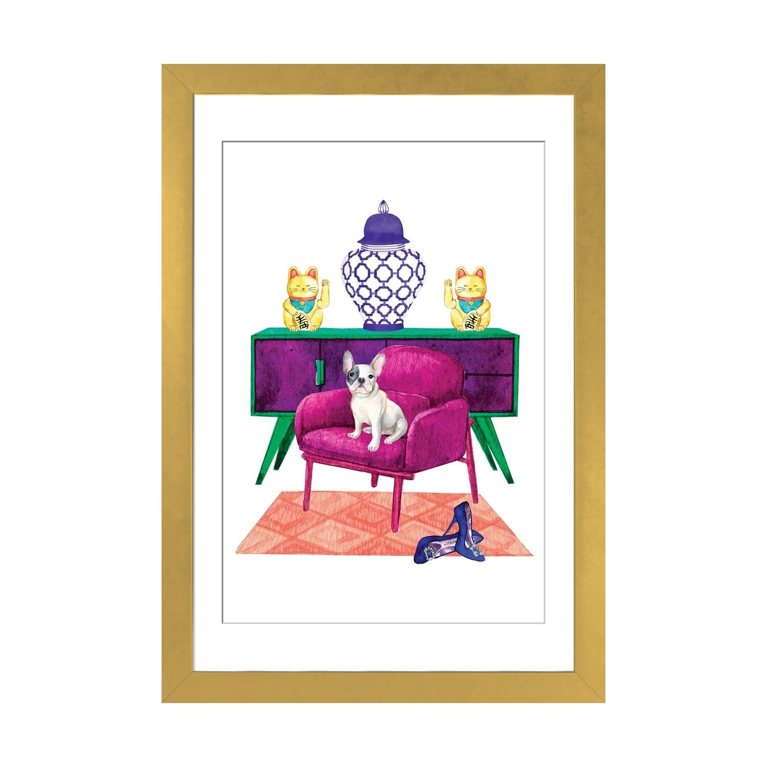iCanvas "French Bulldog in Living Room" by Jania Sharipzhanova