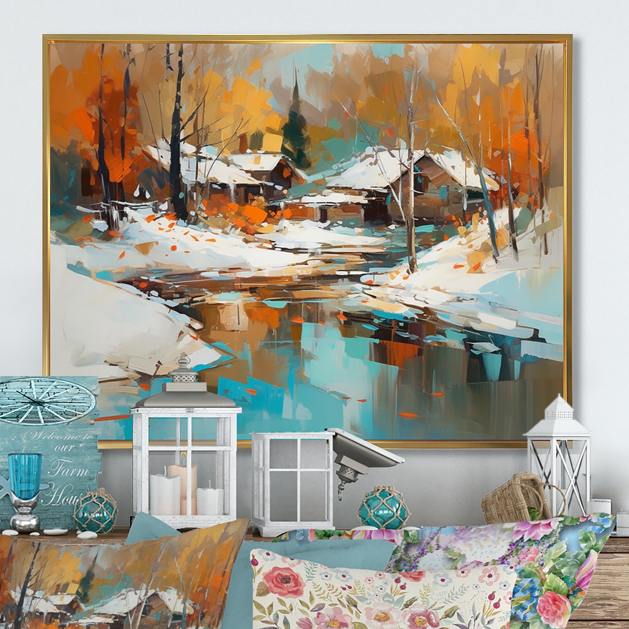 Designart "Winter Farmhouse Landscape III" Cabin & Lodge Framed artwork