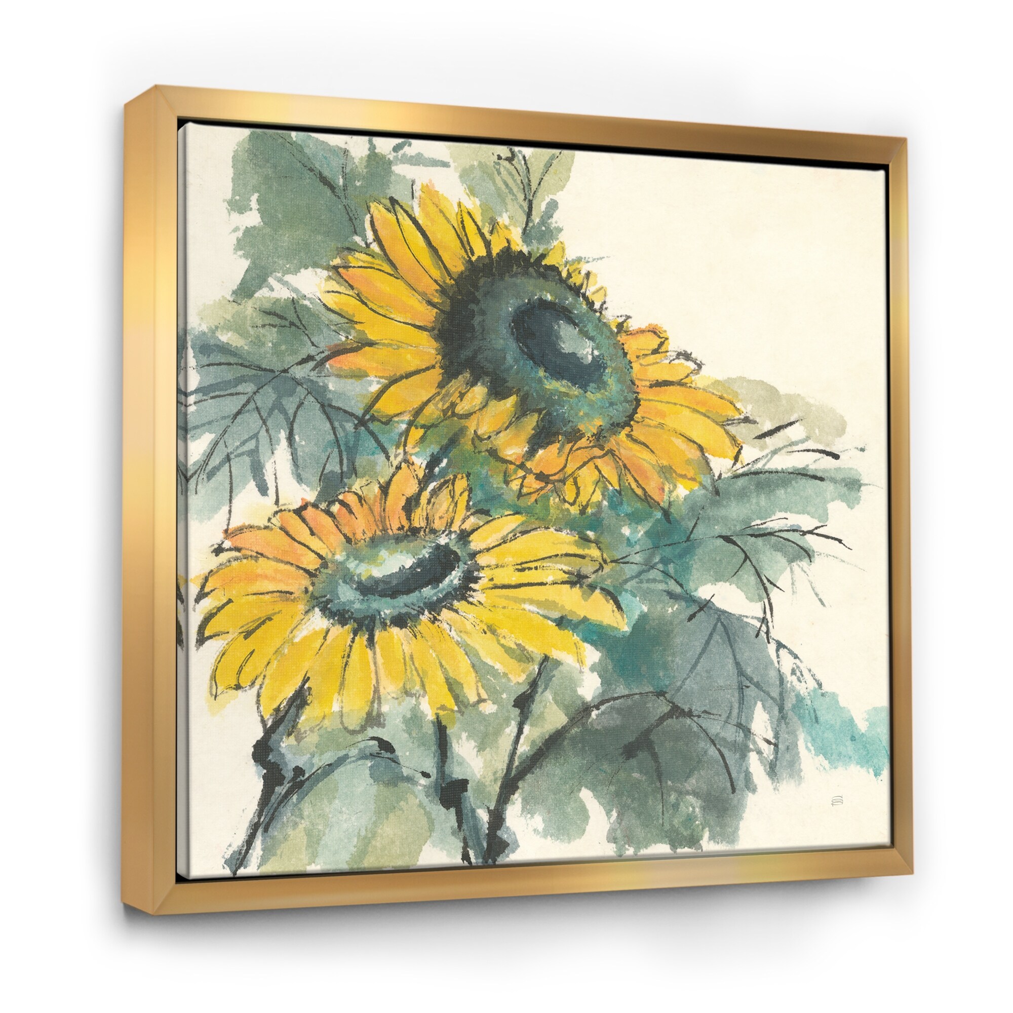 Designart "Tradionnal Sunflower I" Cabin & Lodge Framed Canvas