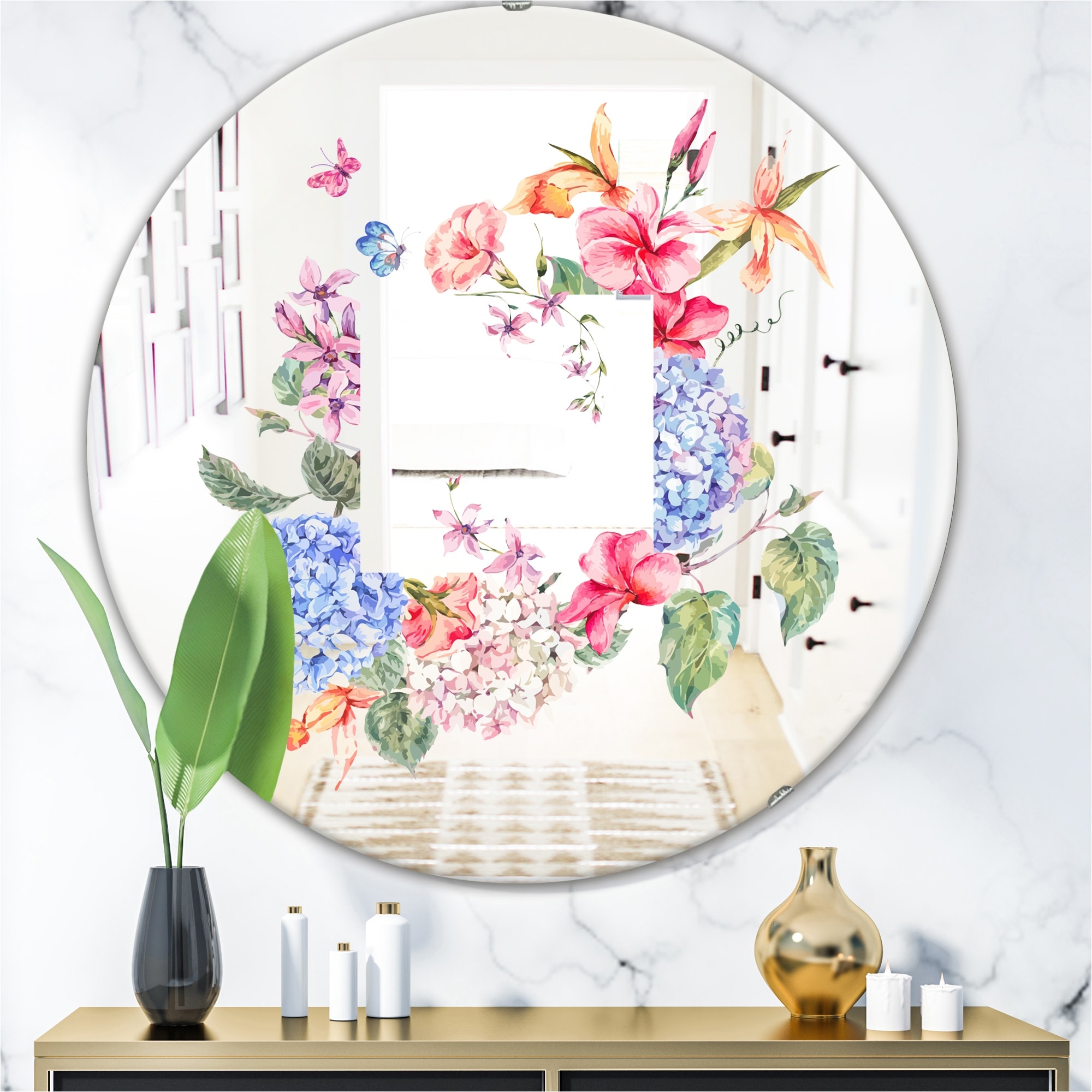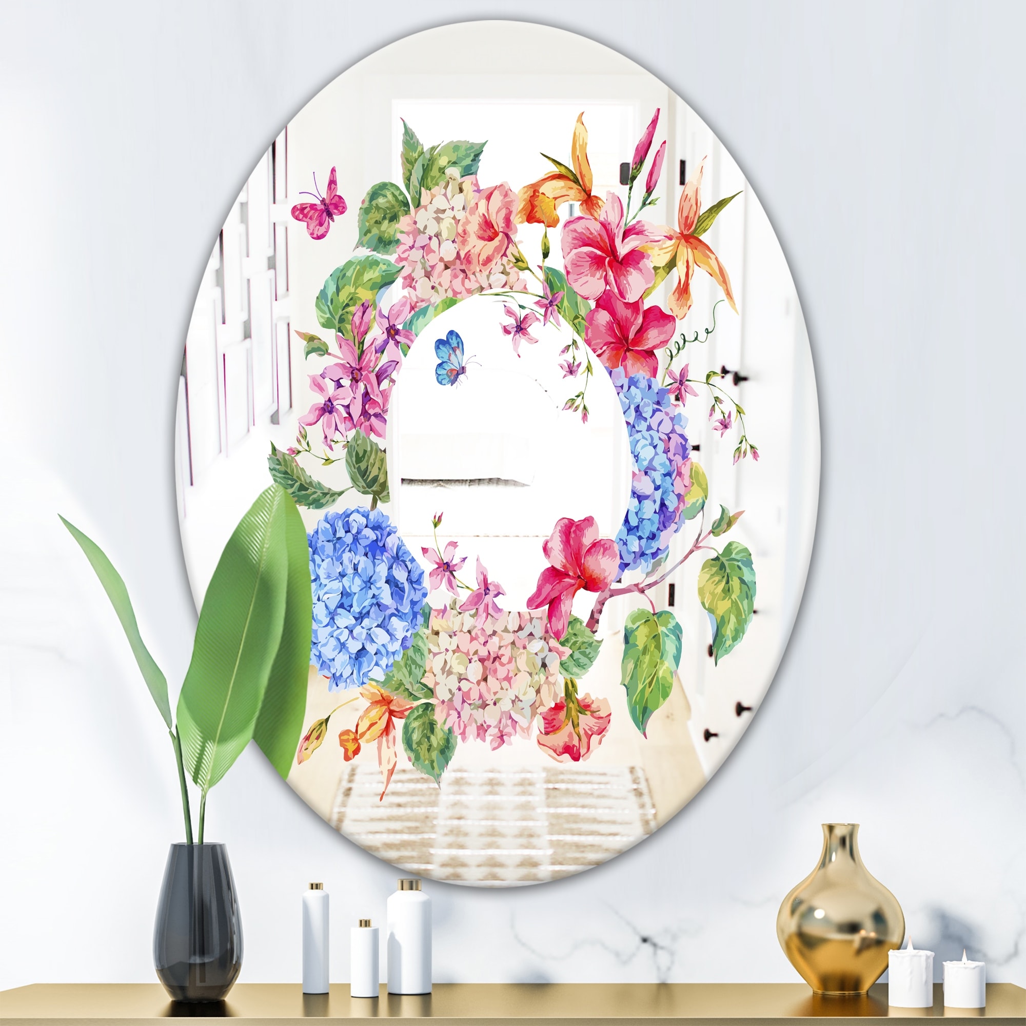 Designart 'Floral Greeting' Printed Cabin and Lodge Oval or Round Vanity Mirror