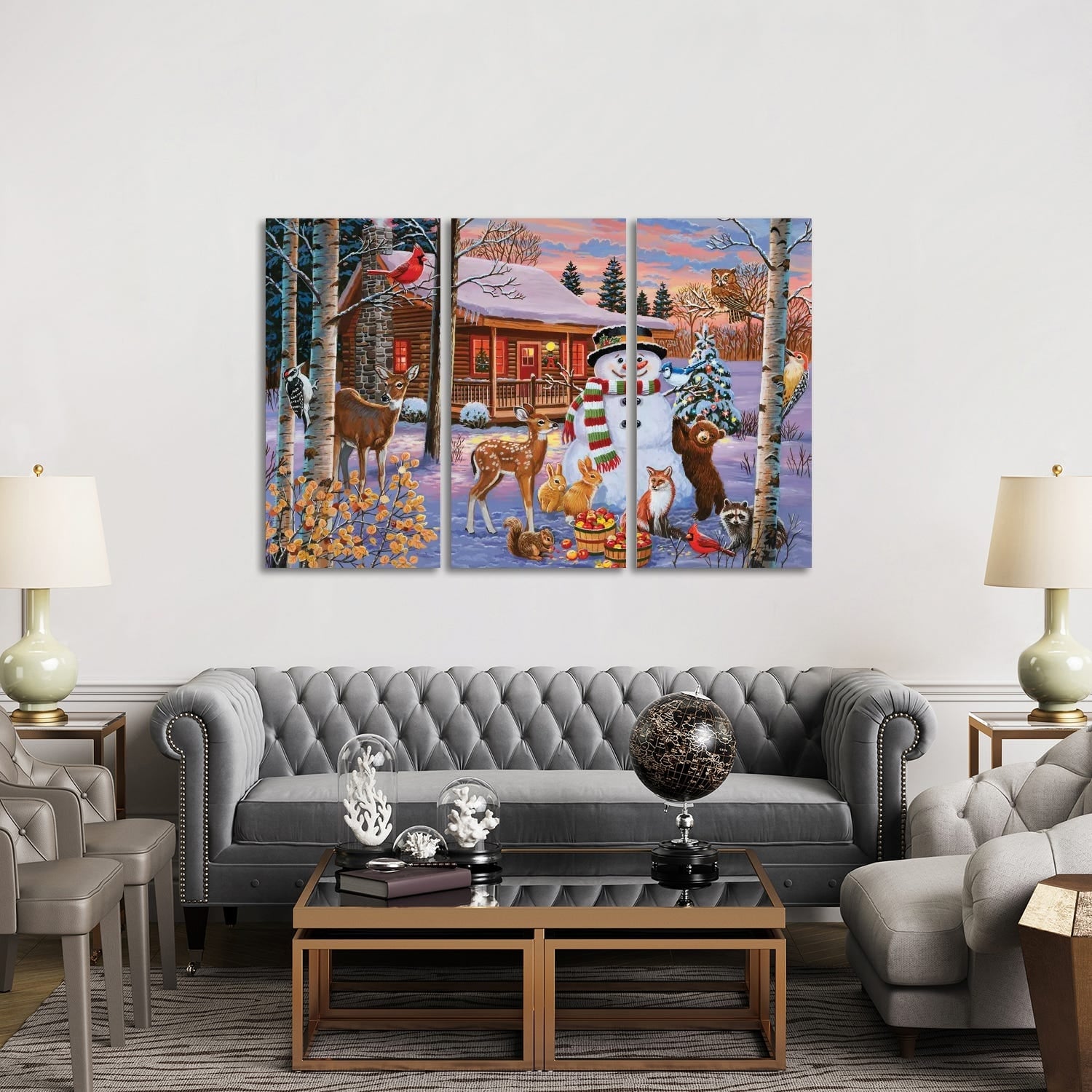 iCanvas "Holiday Cabin With Snowman" by William Vanderdasson 3-Piece Wall Art Set