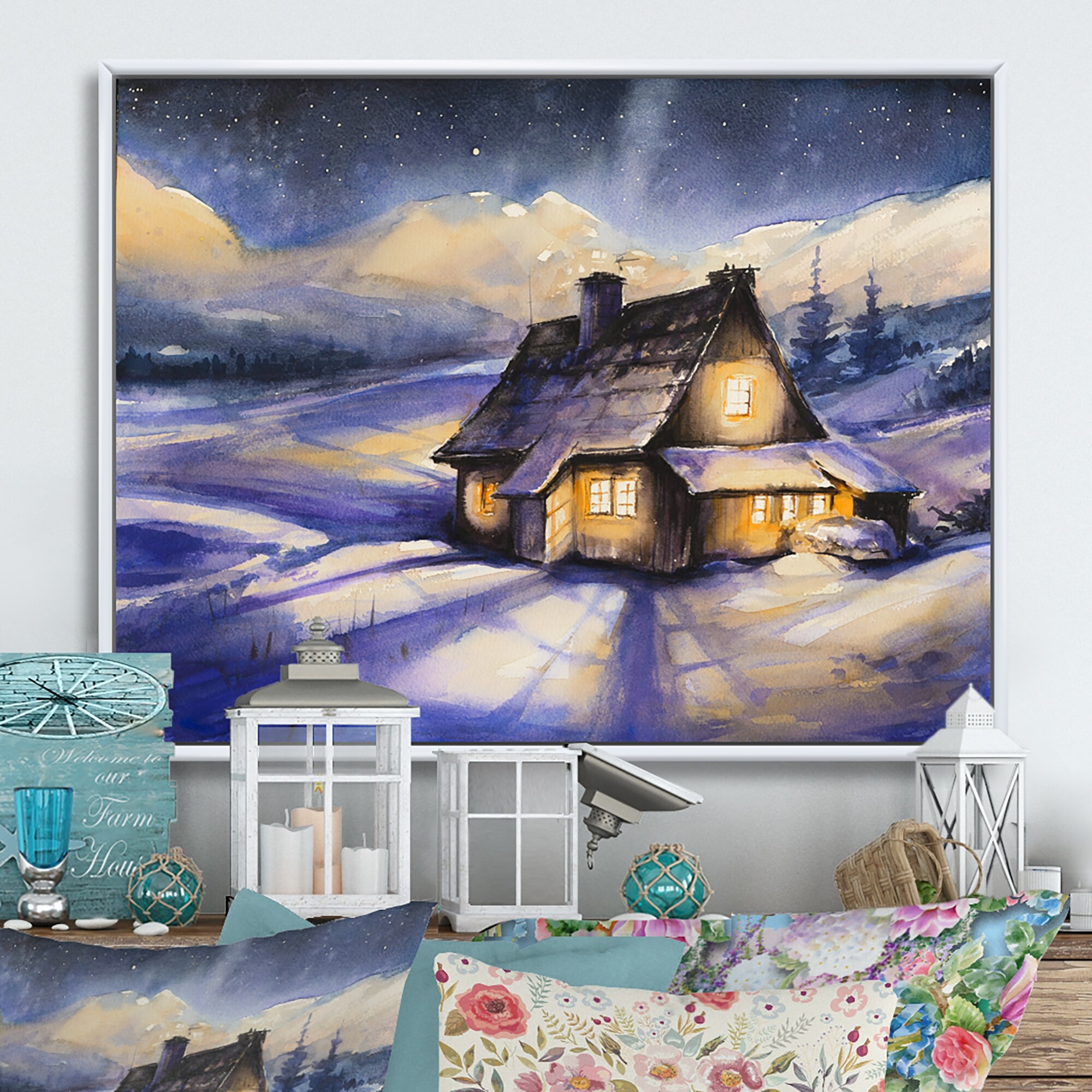 Designart "Cottage In Winter Mountains" Cabin & Lodge Framed Canvas Wall Art