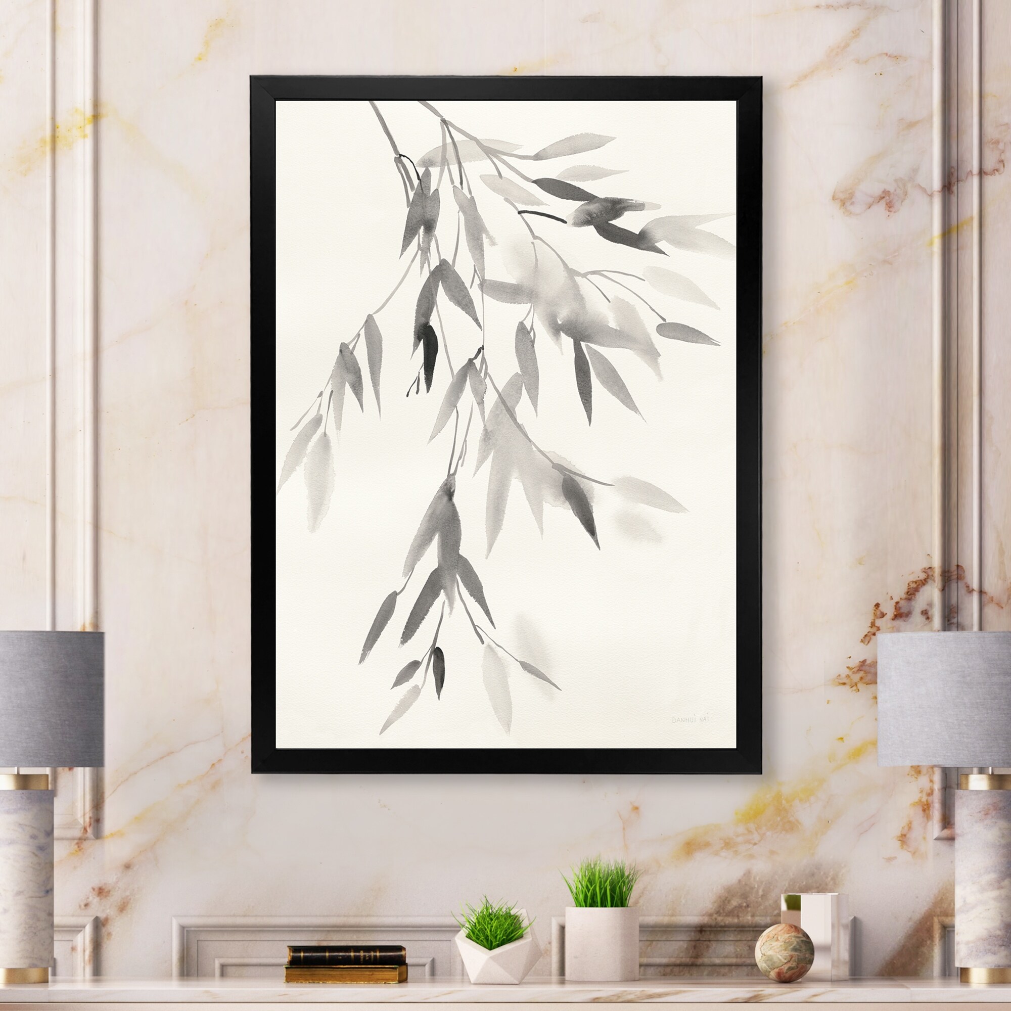 Designart "Simplist Bamboo Leaves IV" Cabin & Lodge Framed Art Print