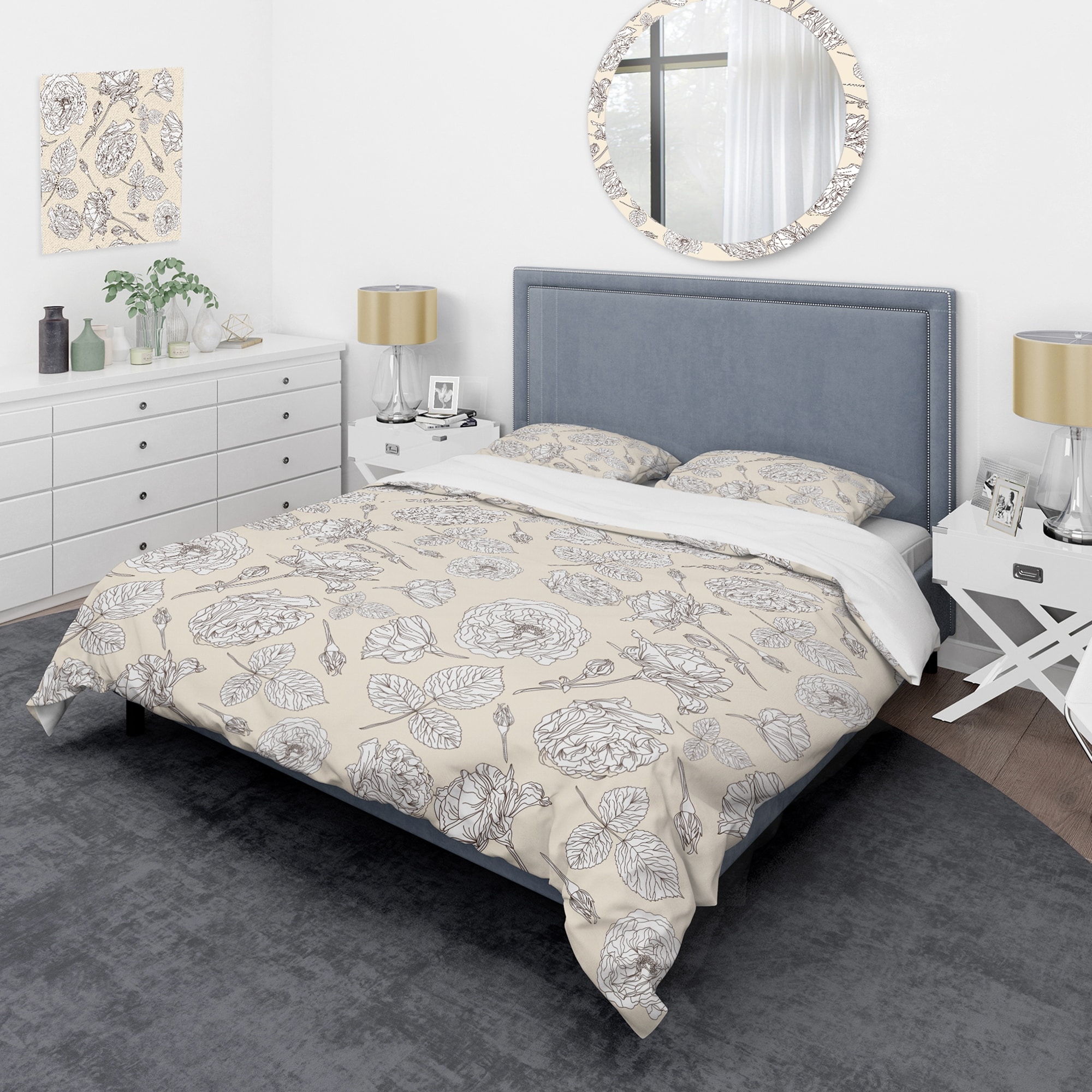 Designart 'Beige Floral' Cabin & Lodge Duvet Cover Set