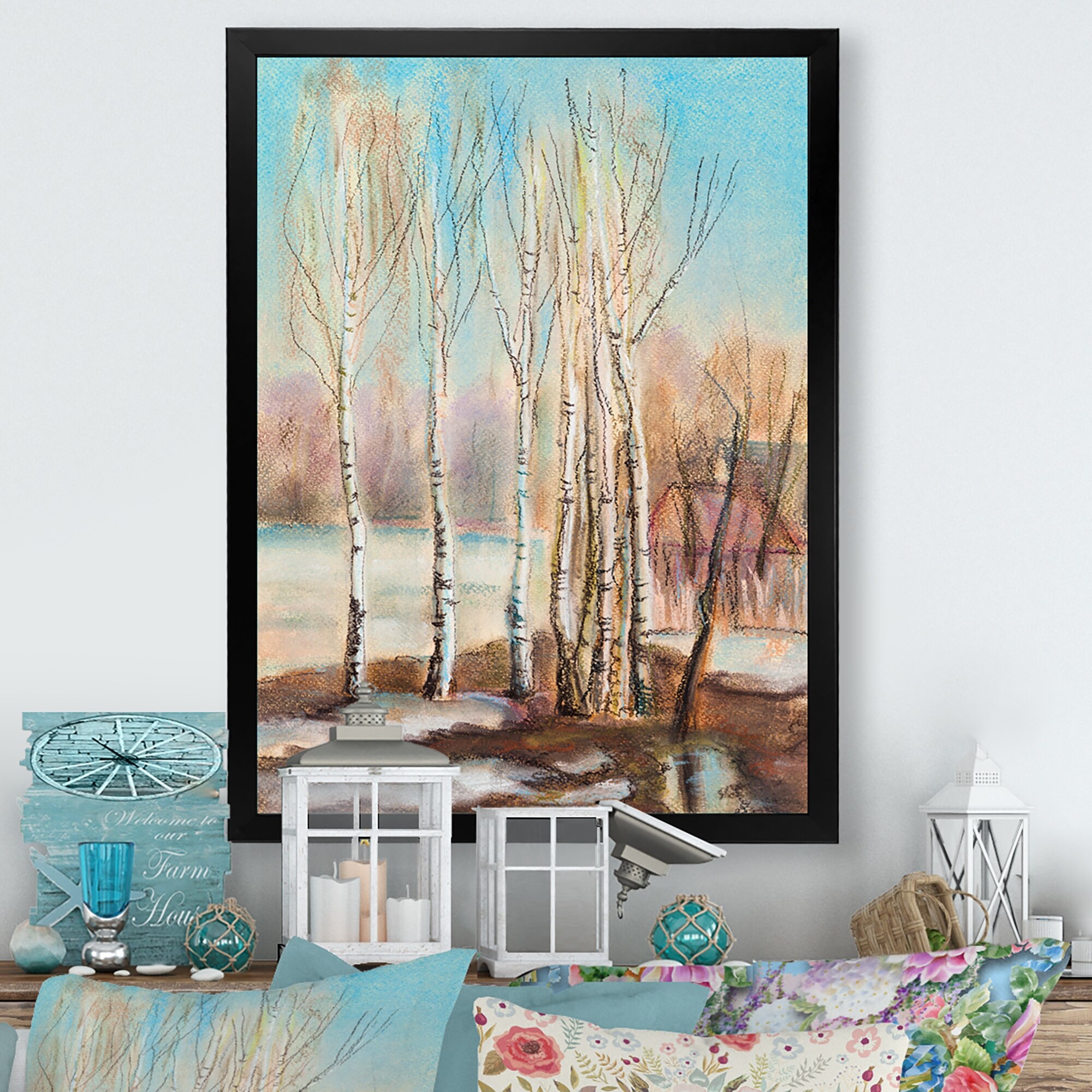 Designart "Birches On the Sun" Cabin & Lodge Framed Wall Decor