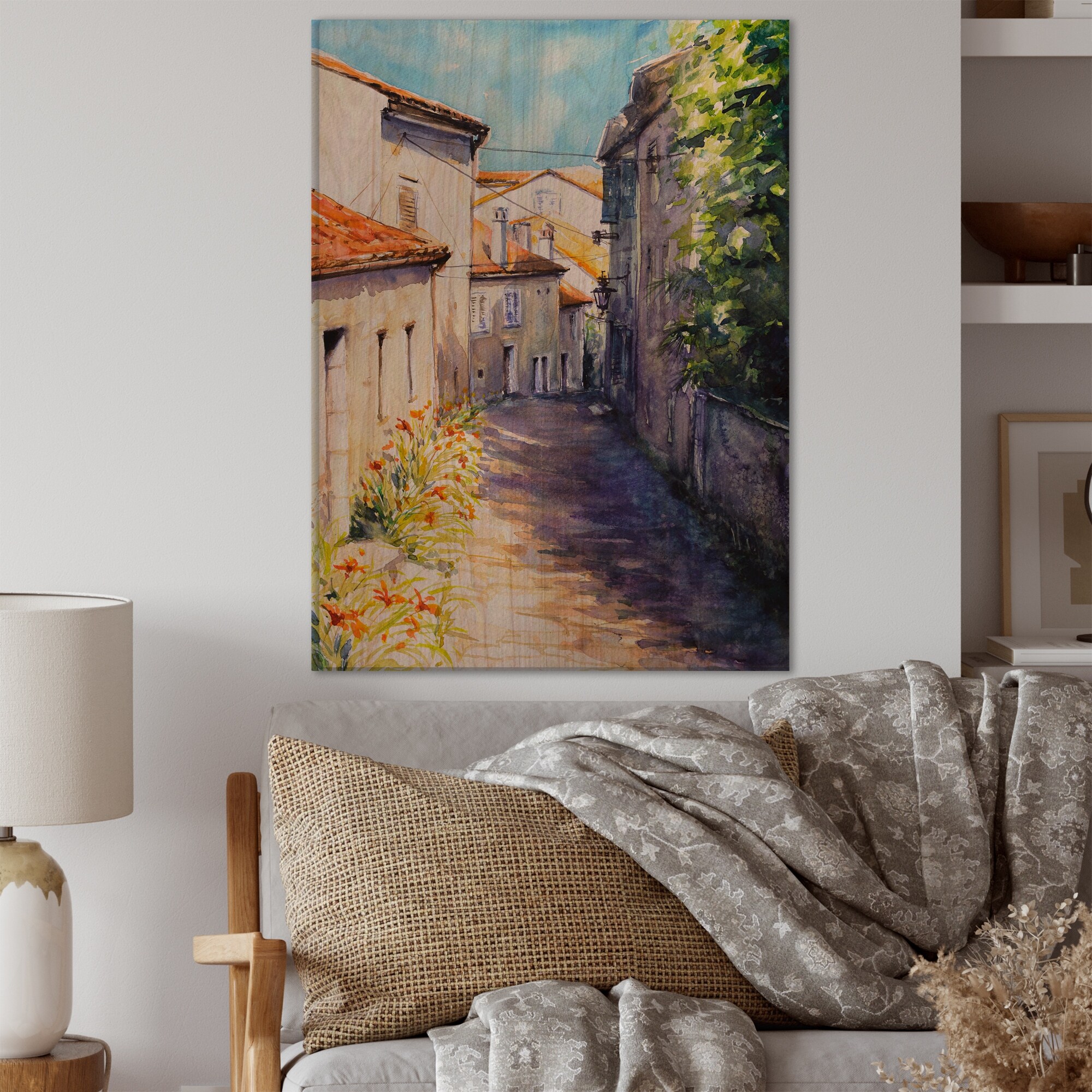 Designart 'Old Mediterranean Street' Cabin & Lodge Wood Wall Art Panels - Natural Pine Wood