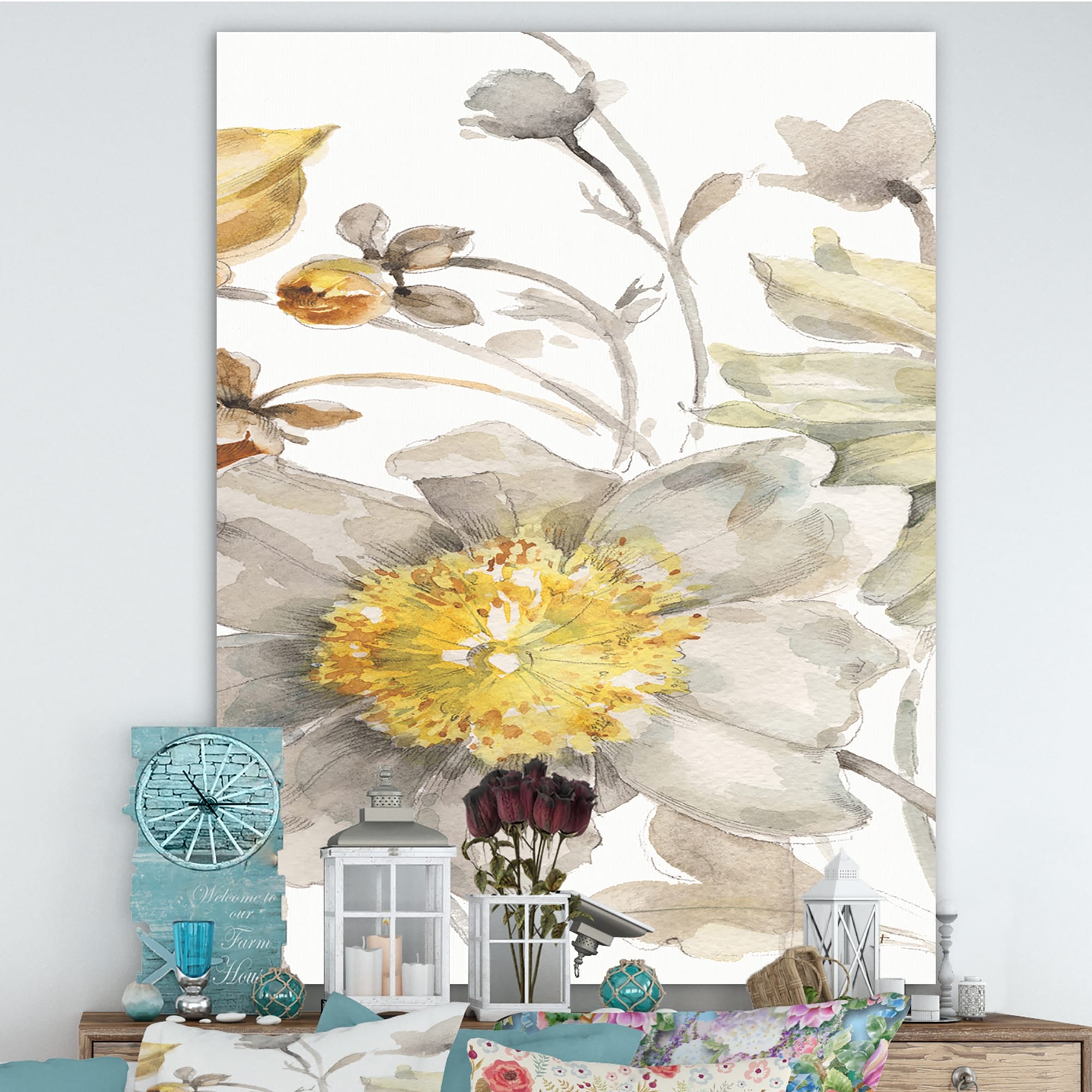 Designart "Fields of Gold Watercolor Flower III" Cabin & Lodge Canvas Art - Grey