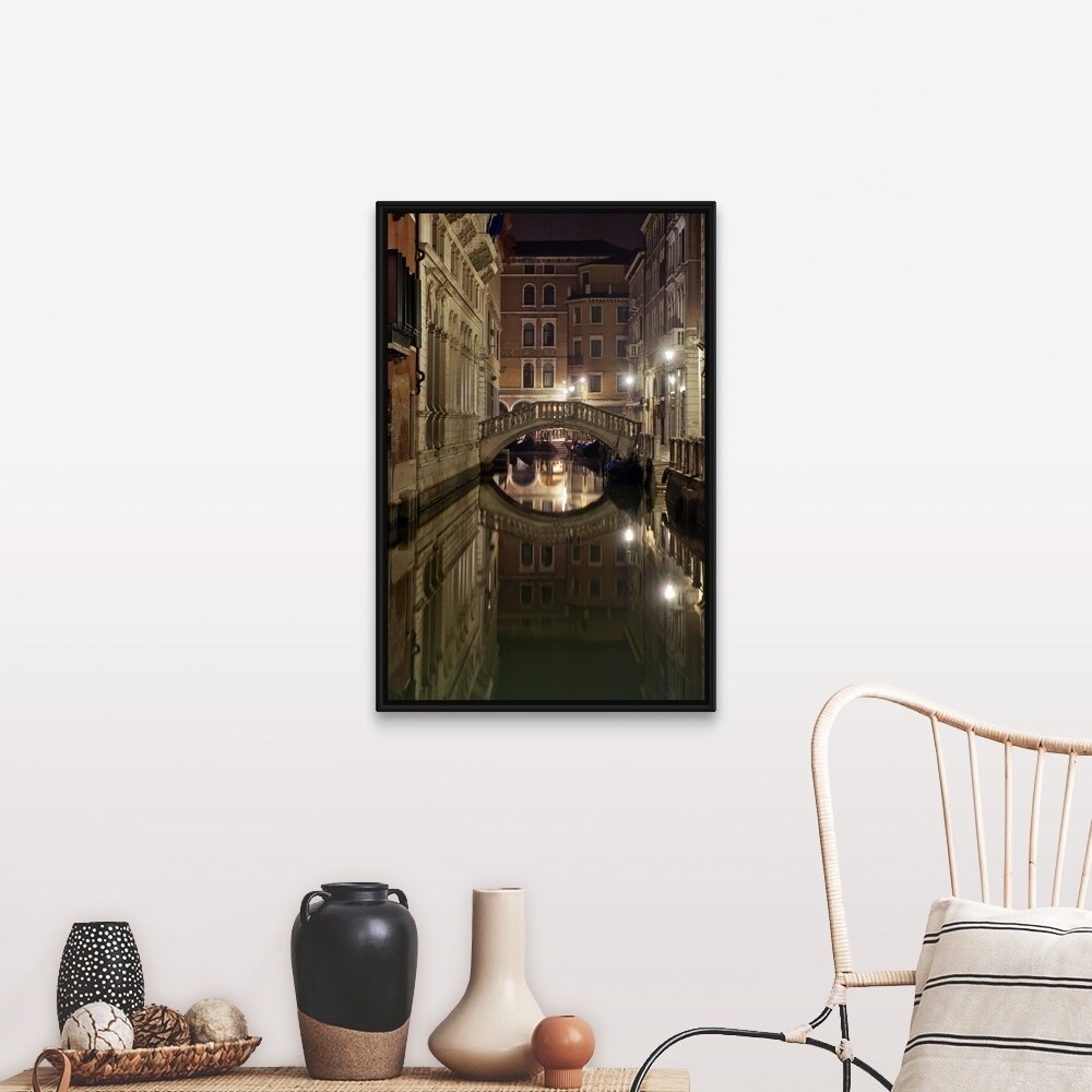 "Canal at dusk in Venice" Black Float Frame Canvas Art