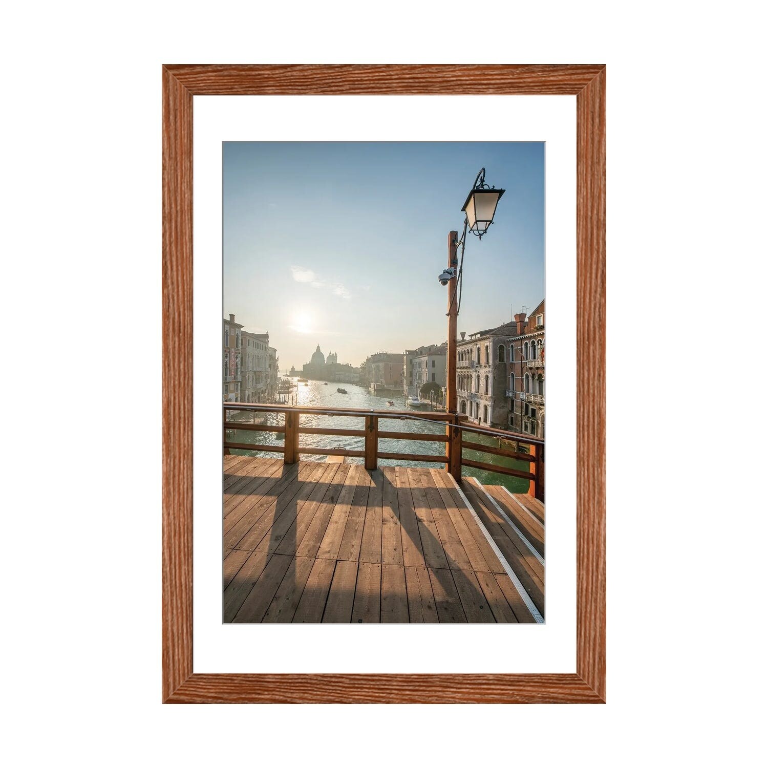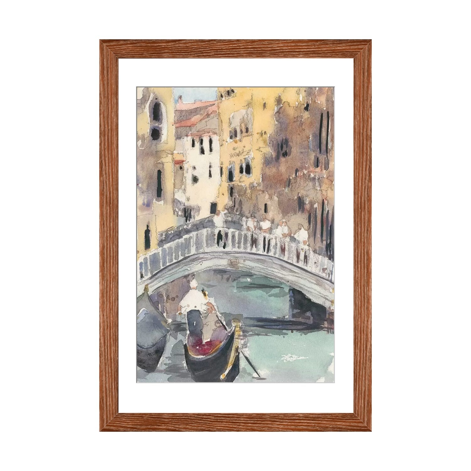 "Walking Bridge Over Venician Canal" Black Framed Print