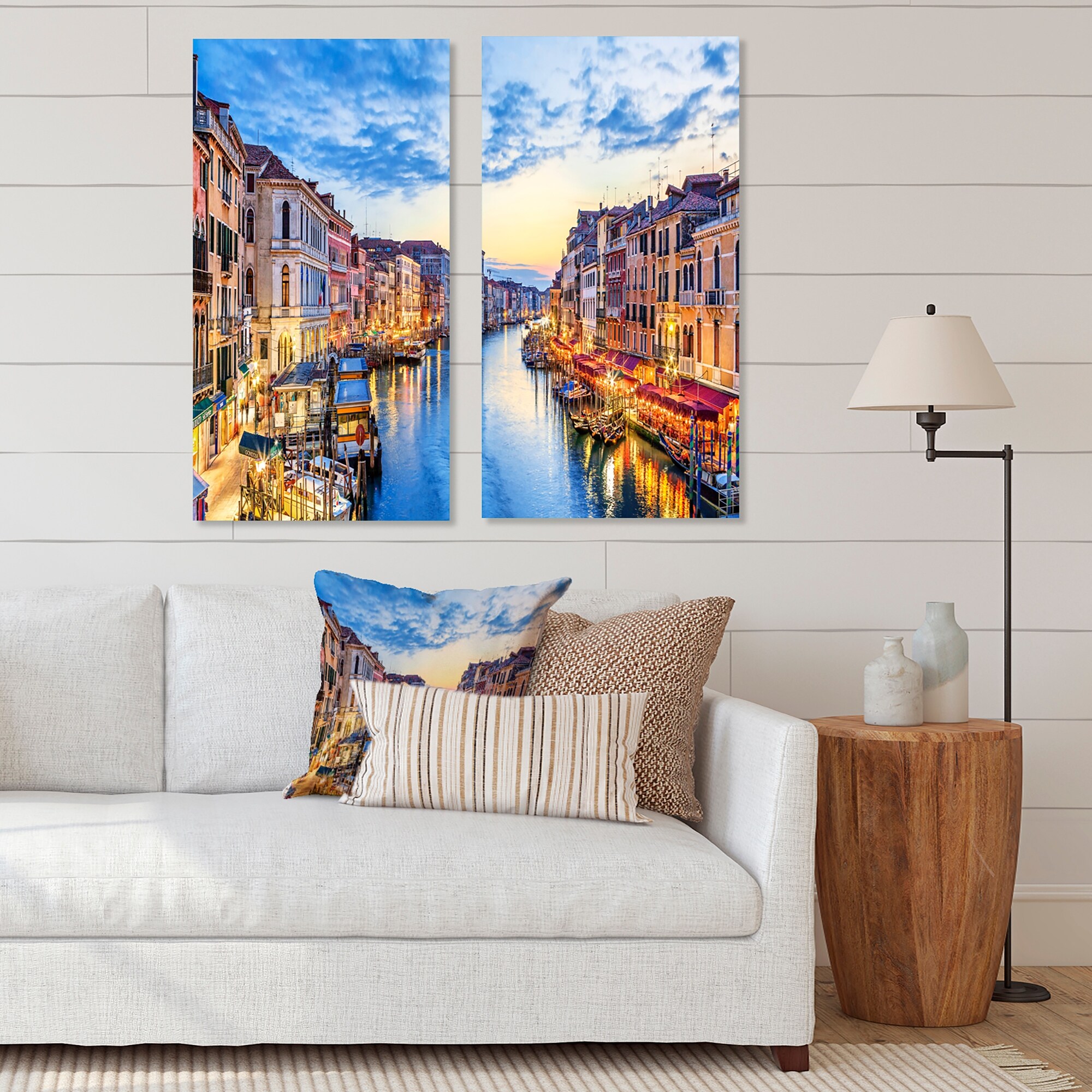 Designart "Grand Canal Panorama" Landscape Canvas Wall Art Print 2 Piece Set