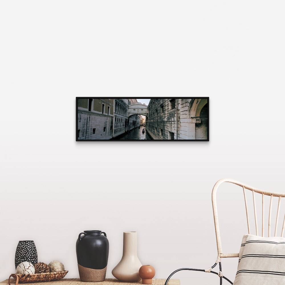 "Bridge on a canal, Bridge of Sighs, Grand Canal, Venice, Italy" Black Float Frame Canvas Art