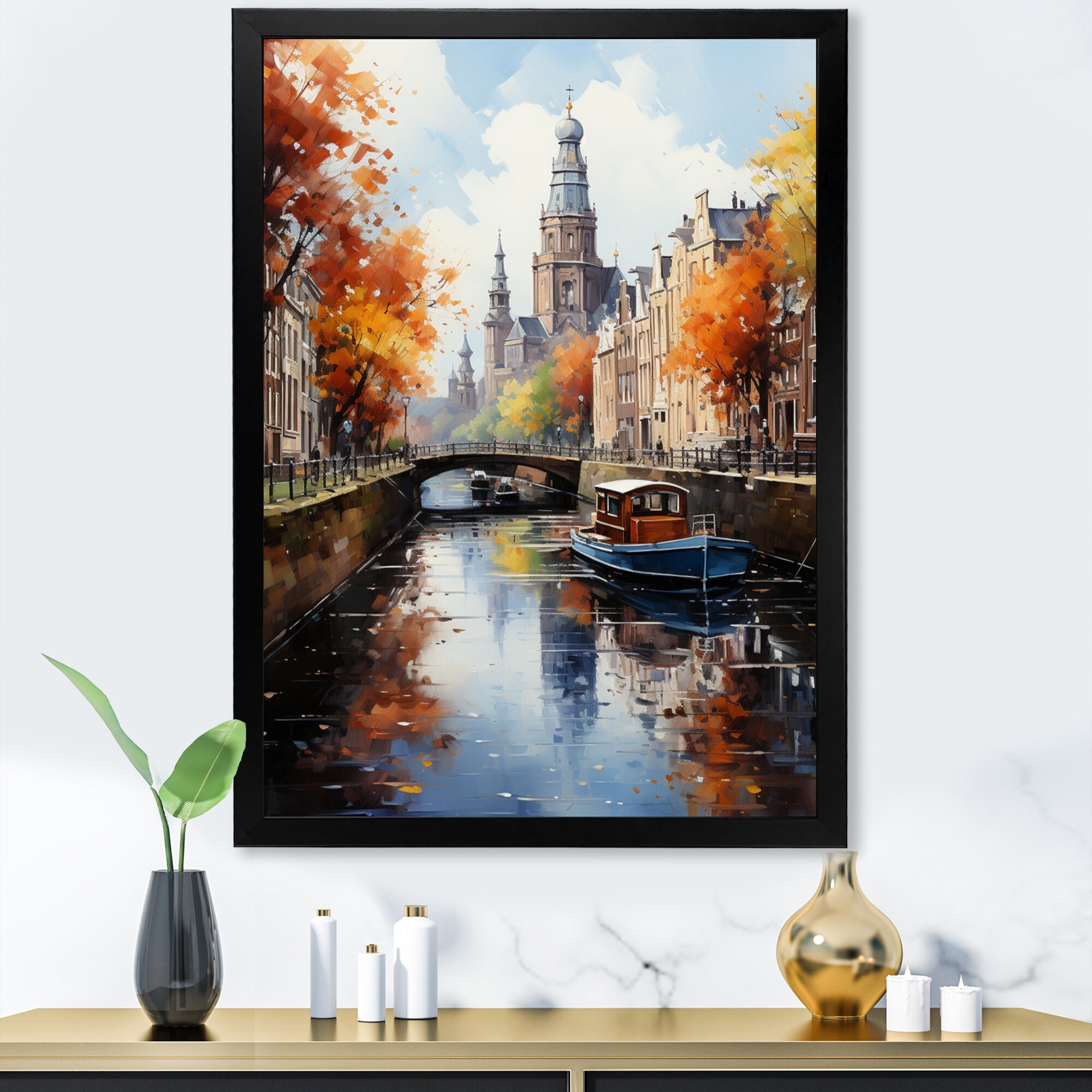 Designart "Beige Canal Vibrant Waterways Bold I" Canals Framed Canvas Print