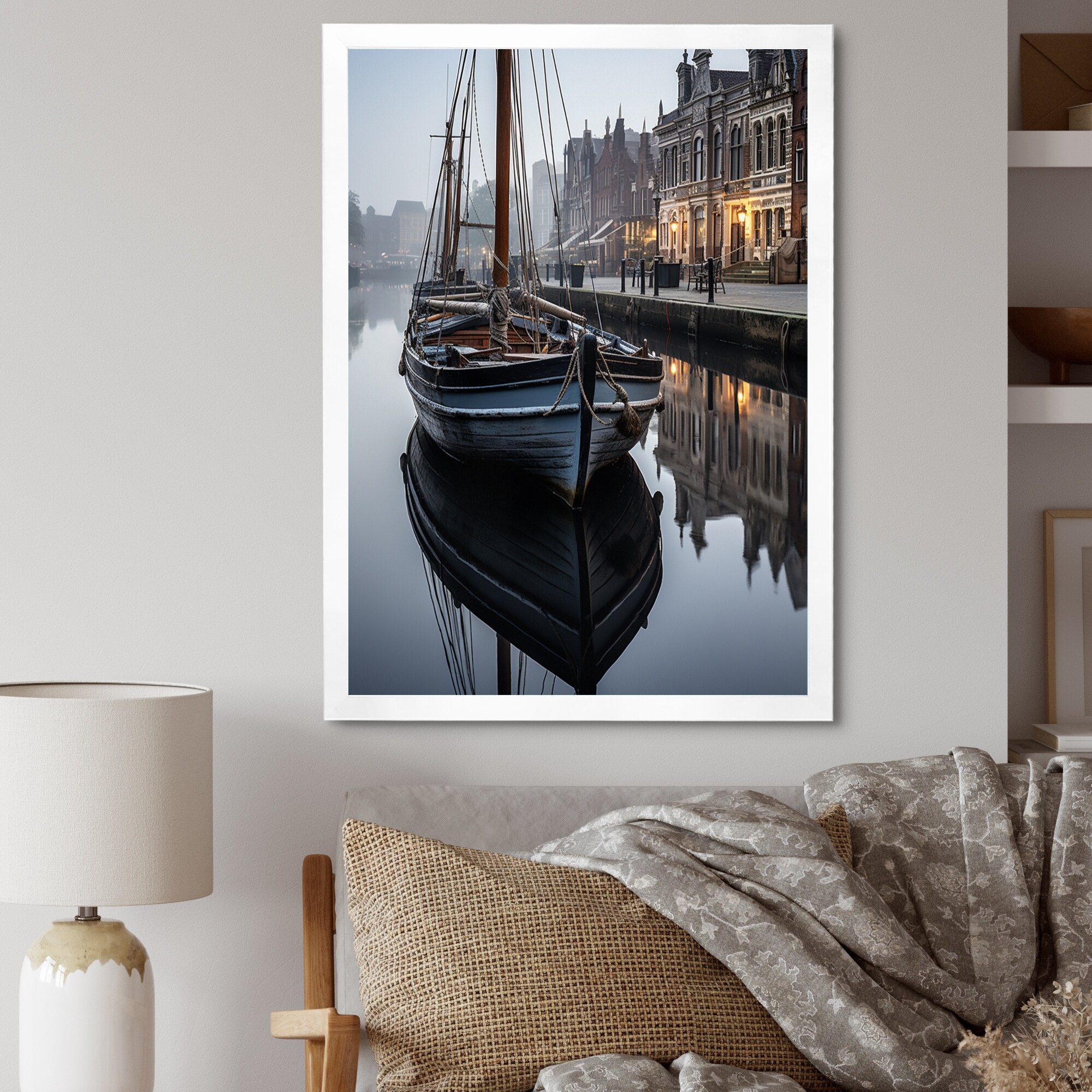 Designart "Canal Quiet Passage Charcoal III" Canals Framed Wall Art Living Room