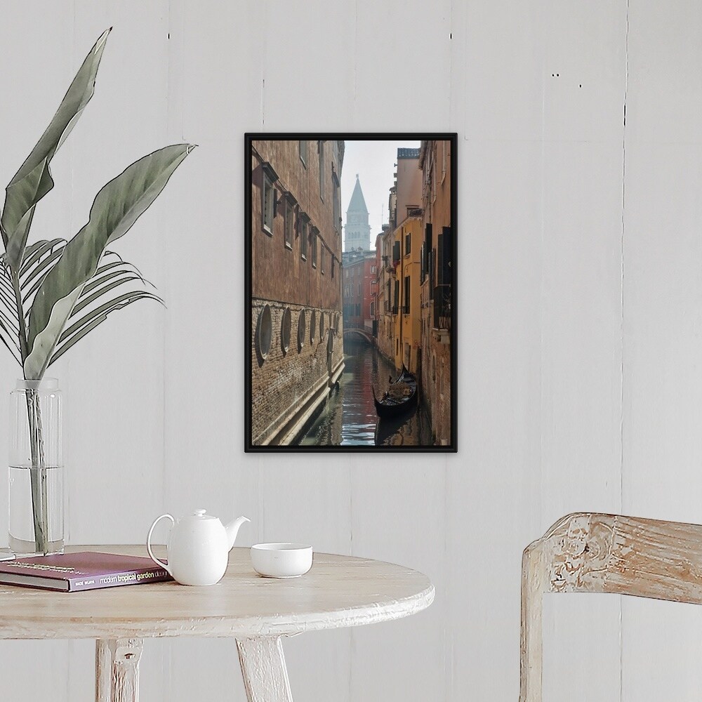 "Gondolas on the narrow canal" Black Float Frame Canvas Art
