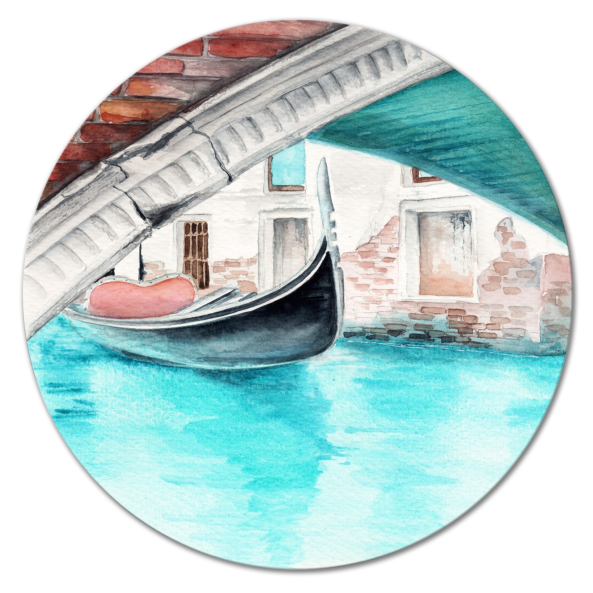 Designart 'The Venetian Canal With A Floating Gondola I' French Country Metal Circle Wall Art