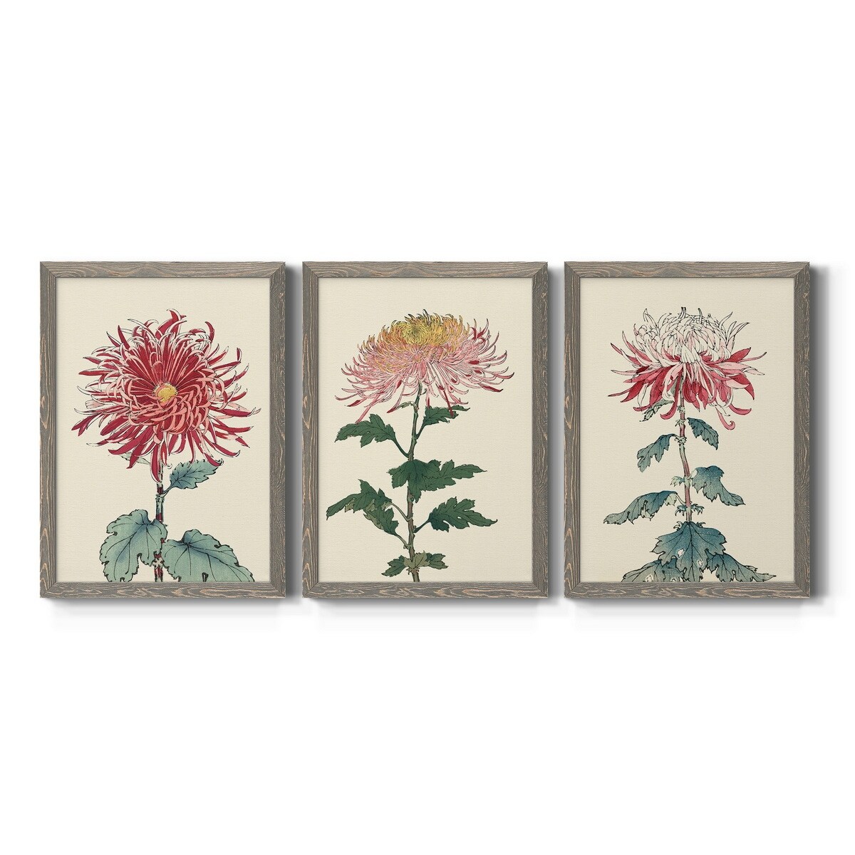 Chrysanthemum Woodblock I-Premium Framed Canvas - Ready to Hang - Multi-Color