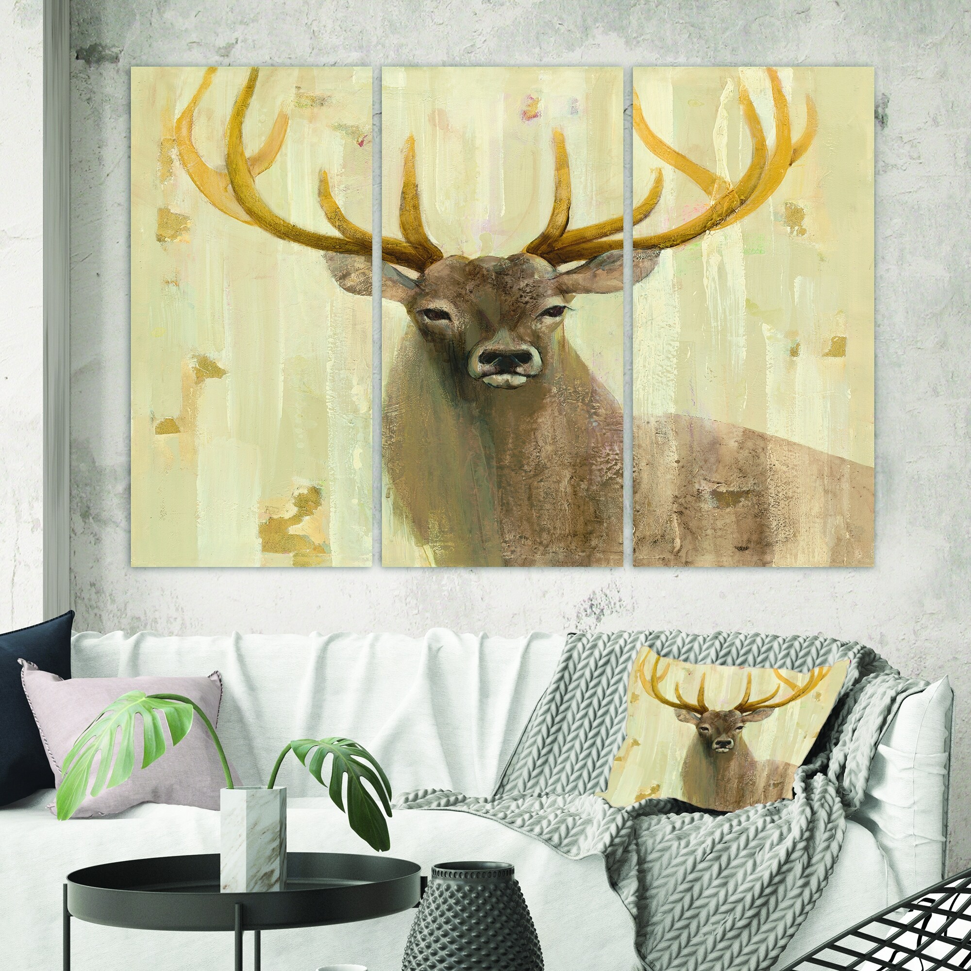Designart "Goldern Deer III" Modern Farmhouse Canvas Artwork Print