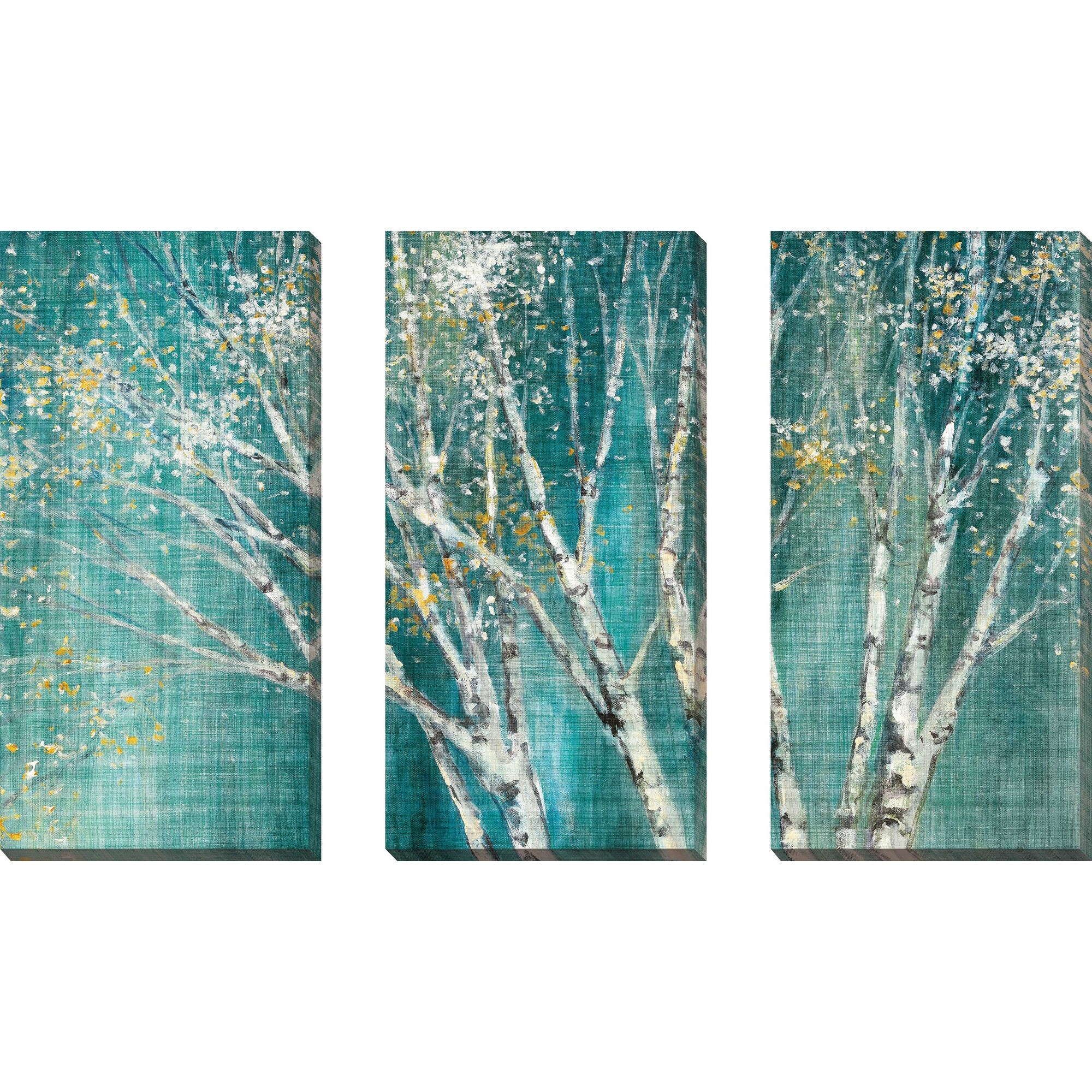 "Blue Birch Horizontal" 3 Piece Set on Canvas